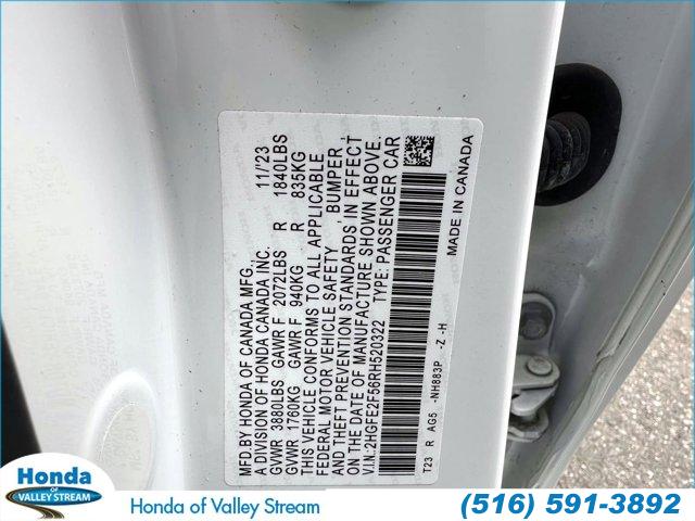 For more information on this 2024 Honda Civic, please call Honda of Valley Stream at (516) 591-3892 or with the contact form on this page. This vehicle's vin number is 2HGFE2F56RH520322 and is recorded as being in stock at Honda of Valley Stream at 164 E. Sunrise Highway in Valley Stream. See all cars from this dealership.