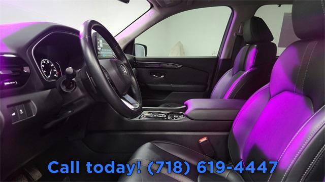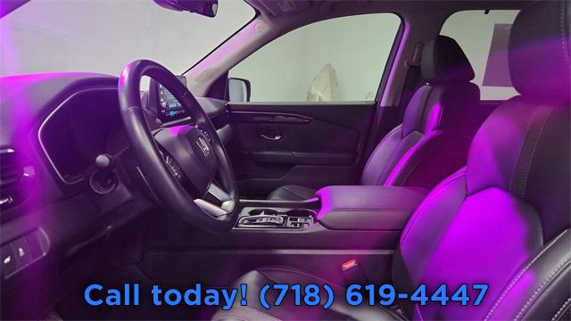 9 Speakers, AM/FM radio: SiriusXM, Radio data system, Radio: 245-Watt Audio System, Air Conditioning, Automatic temperature control, Front dual zone A/C, Rear air conditioning, Rear window defroster, Memory seat, Power driver seat, Power steering, Power windows, Remote keyless entry, Steering wheel mounted audio controls, Four wheel independent suspension, Speed-sensing steering, Traction control, 4-Wheel Disc Brakes, ABS brakes, Dual front impact airbags, Dual front side impact airbags, Emergency communication system: HondaLink Assist, Front anti-roll bar, Knee airbag, Low tire pressure warning, Occupant sensing airbag, Overhead airbag, Rear anti-roll bar, Power Liftgate, Blind Spot Information (BSI) System warning, Brake assist, Electronic Stability Control, Lane departure: Lane Keeping Assist System (LKAS) active, Exterior Parking Camera Rear, Auto High-beam Headlights, Delay-off headlights, Front fog lights, Fully automatic headlights, Panic alarm, Security system, Adaptive Cruise Control: Adaptive Cruise Control (ACC) with Low-Speed Follow, Speed control, Bumpers: body-color, Heated door mirrors, Power door mirrors, Spoiler, Turn signal indicator mirrors, Apple CarPlay/Android Auto, Auto-dimming Rear-View mirror, Driver door bin, Driver vanity mirror, Front reading lights, Garage door transmitter: HomeLink, Illuminated entry, Outside temperature display, Overhead console, Passenger vanity mirror, Rear reading lights, Tachometer, Telescoping steering wheel, Tilt steering wheel, Trip computer, 3rd row seats: split-bench, Front Bucket Seats, Front Center Armrest, Heated Front Bucket Seats, Heated front seats, Leather Seat Trim, Power passenger seat, Reclining 3rd row seat, Split folding rear seat, Passenger door bin, Alloy wheels, Wheels: 18" Pewter Gray Machined Face, Rear window wiper, Speed-Sensitive Wipers, Variably intermittent wipers, Axle Ratio: 4.167