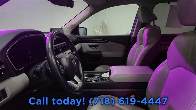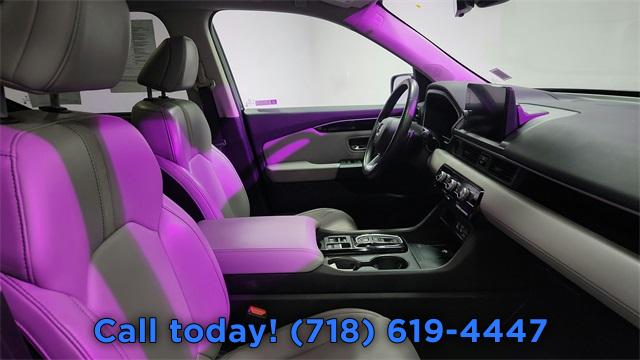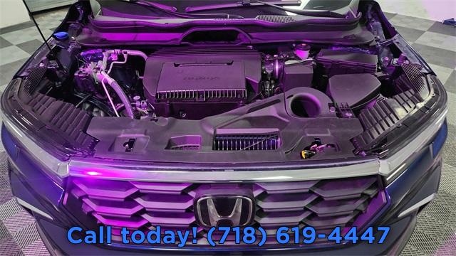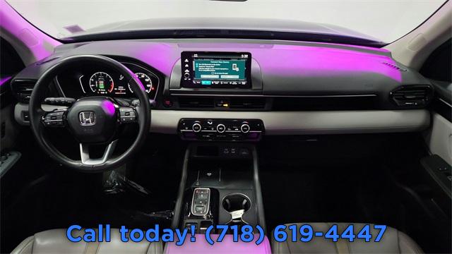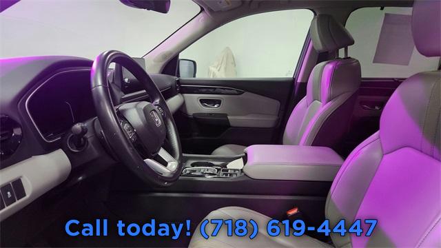 9 Speakers, AM/FM radio: SiriusXM, Radio data system, Radio: 245-Watt Audio System, Air Conditioning, Automatic temperature control, Front dual zone A/C, Rear air conditioning, Rear window defroster, Memory seat, Power driver seat, Power steering, Power windows, Remote keyless entry, Steering wheel mounted audio controls, Four wheel independent suspension, Speed-sensing steering, Traction control, 4-Wheel Disc Brakes, ABS brakes, Dual front impact airbags, Dual front side impact airbags, Emergency communication system: HondaLink Assist, Front anti-roll bar, Knee airbag, Low tire pressure warning, Occupant sensing airbag, Overhead airbag, Rear anti-roll bar, Power Liftgate, Blind Spot Information (BSI) System warning, Brake assist, Electronic Stability Control, Lane departure: Lane Keeping Assist System (LKAS) active, Exterior Parking Camera Rear, Auto High-beam Headlights, Delay-off headlights, Front fog lights, Fully automatic headlights, Panic alarm, Security system, Adaptive Cruise Control: Adaptive Cruise Control (ACC) with Low-Speed Follow, Speed control, Bumpers: body-color, Heated door mirrors, Power door mirrors, Spoiler, Turn signal indicator mirrors, Apple CarPlay/Android Auto, Auto-dimming Rear-View mirror, Driver door bin, Driver vanity mirror, Front reading lights, Garage door transmitter: HomeLink, Illuminated entry, Outside temperature display, Overhead console, Passenger vanity mirror, Rear reading lights, Tachometer, Telescoping steering wheel, Tilt steering wheel, Trip computer, 3rd row seats: split-bench, Front Bucket Seats, Front Center Armrest, Heated Front Bucket Seats, Heated front seats, Leather Seat Trim, Power passenger seat, Reclining 3rd row seat, Split folding rear seat, Passenger door bin, Alloy wheels, Wheels: 18" Pewter Gray Machined Face, Rear window wiper, Speed-Sensitive Wipers, Variably intermittent wipers, Axle Ratio: 4.167