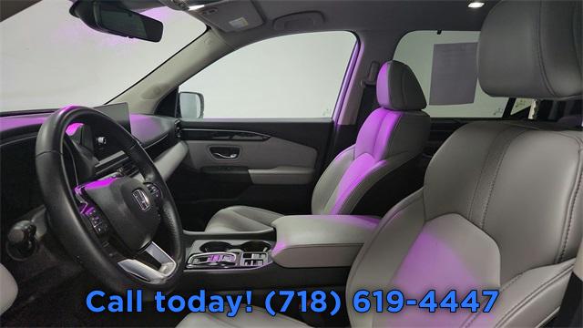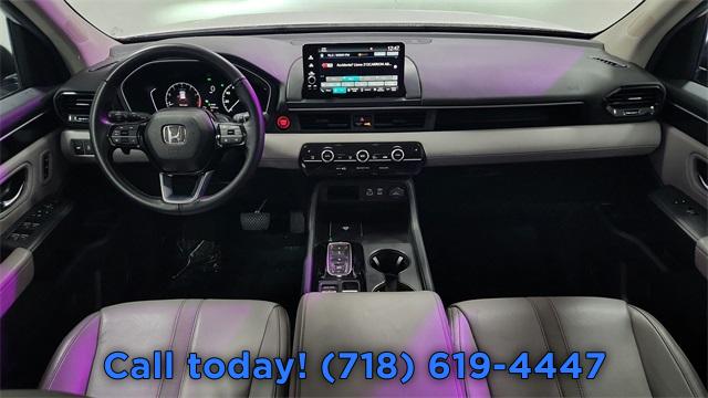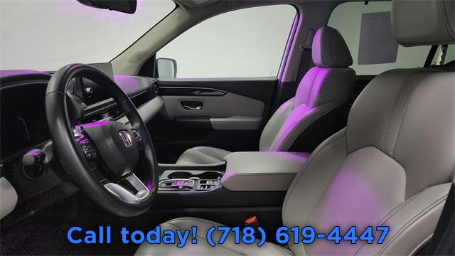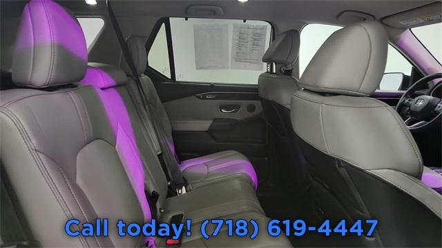 9 Speakers, AM/FM radio: SiriusXM, Radio data system, Radio: 245-Watt Audio System, Air Conditioning, Automatic temperature control, Front dual zone A/C, Rear air conditioning, Rear window defroster, Memory seat, Power driver seat, Power steering, Power windows, Remote keyless entry, Steering wheel mounted audio controls, Four wheel independent suspension, Speed-sensing steering, Traction control, 4-Wheel Disc Brakes, ABS brakes, Dual front impact airbags, Dual front side impact airbags, Emergency communication system: HondaLink Assist, Front anti-roll bar, Knee airbag, Low tire pressure warning, Occupant sensing airbag, Overhead airbag, Rear anti-roll bar, Power Liftgate, Blind Spot Information (BSI) System warning, Brake assist, Electronic Stability Control, Lane departure: Lane Keeping Assist System (LKAS) active, Exterior Parking Camera Rear, Auto High-beam Headlights, Delay-off headlights, Front fog lights, Fully automatic headlights, Panic alarm, Security system, Adaptive Cruise Control: Adaptive Cruise Control (ACC) with Low-Speed Follow, Speed control, Bumpers: body-color, Heated door mirrors, Power door mirrors, Spoiler, Turn signal indicator mirrors, Apple CarPlay/Android Auto, Auto-dimming Rear-View mirror, Driver door bin, Driver vanity mirror, Front reading lights, Garage door transmitter: HomeLink, Illuminated entry, Outside temperature display, Overhead console, Passenger vanity mirror, Rear reading lights, Rear seat center armrest, Tachometer, Telescoping steering wheel, Tilt steering wheel, Trip computer, 3rd row seats: split-bench, Front Bucket Seats, Front Center Armrest, Heated Front Bucket Seats, Heated front seats, Leather Seat Trim, Power passenger seat, Reclining 3rd row seat, Split folding rear seat, Passenger door bin, Alloy wheels, Wheels: 18" Pewter Gray Machined Face, Rear window wiper, Speed-Sensitive Wipers, Variably intermittent wipers, Axle Ratio: 4.167