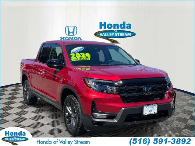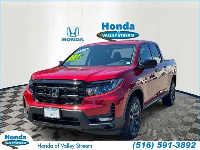 Certified. CARFAX One-Owner. Clean CARFAX. Radiant Red Metallic II 2024 Honda Ridgeline Sport AWD 9-Speed Automatic 3.5L V6 SOHC i-VTEC 24V Black Cloth.Honda of Valley Stream, NY has been serving drivers in Brooklyn, Queens, the Five Towns, and Long Island since 1982. Family-owned and operated, Honda of Valley Stream has always kept the same automotive philosophy in which our customers always come first.HondaTrue Certified Details:* Limited Warranty: 24 Month/100,000 Mile (whichever comes first) after new car warranty expires or from certified purchase date* Transferable Warranty* Powertrain Limited Warranty: 84 Month/100,000 Mile (whichever comes first) from original in-service date* Roadside Assistance* 182 Point Inspection* Warranty Deductible: $0* Vehicles purchased within New Vehicle Limited Warranty period: extends New Vehicle Limited Warranty to 5 years*/60,000 miles*. Honda Care Roadside Assistance for 2 year/100,000 miles (whichever occurs first). Up to two complimentary oil changes within the first year of ownership. SiriusXM 90-Day Trial.* Vehicle History