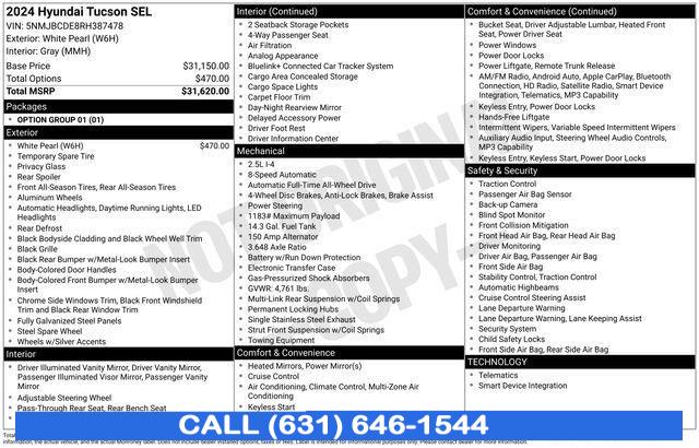 CARFAX One-Owner. 2024 Hyundai Tucson White Pearl * NYS INSPECTION INCLUDED *, * FULL INTERIOR / EXTERIOR DETAIL *, * BLUETOOTH *, * LIMITED NYS LEMON LAW WARRANTY INCLUDED *, *FRESH OIL CHANGE *, * 150 MULTI POINT INSPECTION *, AWD, Apple CarPlay & Android Auto. 23/29 City/Highway MPG Priced below KBB Fair Purchase Price!