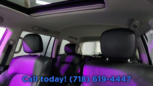 • Navigation system: INFINITI InTouch Navigation, AM/FM radio: SiriusXM, Radio data system, Radio: Bose Premium Audio System w/13 Speakers, Air Conditioning, Automatic temperature control, Front dual zone A/C, Rear air conditioning, Rear window defroster, Memory seat, Power driver seat, Power steering, Power windows, Remote keyless entry, Steering wheel memory, Steering wheel mounted audio controls, Auto-leveling suspension, Four wheel independent suspension, Speed-sensing steering, Traction control, 4-Wheel Disc Brakes, ABS brakes, Anti-whiplash front head restraints, Dual front impact airbags, Dual front side impact airbags, Emergency communication system: INFINITI InTouch, Front anti-roll bar, Low tire pressure warning, Occupant sensing airbag, Overhead airbag, Rear anti-roll bar, Power moonroof, Power Liftgate, Brake assist, Electronic Stability Control, Auto High-beam Headlights, Delay-off headlights, Front fog lights, Fully automatic headlights, Literature Kit, Panic alarm, Security system, Speed control, Auto-dimming door mirrors, Bumpers: body-color, Heated door mirrors, Power door mirrors, Spoiler, Turn signal indicator mirrors, Apple CarPlay/Android Auto, Auto tilt-away steering wheel, Auto-dimming Rear-View mirror, Compass, Driver door bin, Driver vanity mirror, Front reading lights, Garage door transmitter: HomeLink, Heated steering wheel, Illuminated entry, Leather Shift Knob, Leather steering wheel, Outside temperature display, Overhead console, Passenger vanity mirror, Rear reading lights, Rear seat center armrest, Tachometer, Telescoping steering wheel, Tilt steering wheel, Trip computer, Voltmeter, 3rd row seats: bench, Front Bucket Seats, Front Center Armrest, Heated Front Bucket Seats, Heated front seats, Leather-Appointed Seats, Power passenger seat, Reclining 3rd row seat, Split folding rear seat, Passenger door bin, 20" Aluminum Alloy Wheels, Alloy wheels, Rain sensing wipers, Rear window wiper, Variably intermittent wipers, 2.937 Axle Ratio