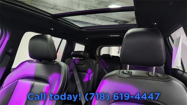 Navigation System, Quick Order Package 23E, Trailer Tow Package, 6 Speakers, Active Noise Control System, AM/FM radio: SiriusXM with 360L, Audio memory, Radio data system, Radio: Uconnect 5 Nav w/10.1" Display, Air Conditioning, Automatic temperature control, Front dual zone A/C, Rear air conditioning, Rear window defroster, Memory seat, Power driver seat, Power steering, Power windows, Remote keyless entry, Steering wheel mounted audio controls, Four wheel independent suspension, Normal Duty Suspension, Rear Load Leveling Suspension, Traction control, 4-Wheel Disc Brakes, ABS brakes, Anti-whiplash front head restraints, Dual front impact airbags, Dual front side impact airbags, Emergency communication system, Front anti-roll bar, Knee airbag, Low tire pressure warning, Occupant sensing airbag, Overhead airbag, Rear anti-roll bar, Dual-Pane Panoramic Sunroof, Power Liftgate, Brake assist, Electronic Stability Control, ParkView Rear Back-Up Camera, Auto High-beam Headlights, Automatic Headlamp Leveling System, Delay-off headlights, Front fog lights, Fully automatic headlights, Panic alarm, Security system, Speed control, 220 Amp Alternator, Heavy-Duty Engine Cooling, Bumpers: body-color, Dual Exhaust Tips, Front License Plate Bracket, Heated door mirrors, Power door mirrors, Spoiler, Turn signal indicator mirrors, Capri Leatherette Seats, Compass, Driver door bin, Driver vanity mirror, Front reading lights, Garage door transmitter, Heated steering wheel, Illuminated entry, Interior Rear Facing Camera, Outside temperature display, Overhead console, Passenger vanity mirror, Rear reading lights, Tachometer, Telescoping steering wheel, Tilt steering wheel, Trip computer, Voltmeter, 3rd row seats: split-bench, Front Bucket Seats, Heated front seats, Heated rear seats, Manual Fold Seatbacks, Power passenger seat, Reclining 3rd row seat, Split folding rear seat, Front Center Armrest w/Storage, Passenger door bin, 7 & 4 Pin Wiring Harness, Class IV Receiver Hitch, Trailer Hitch Zoom, Alloy wheels, Wheels: 18" x 8.0" Polished/Painted Aluminum, Wheels: 20" x 8.5" Machined/Painted Alum (DISC), Rear window wiper, Speed-Sensitive Wipers, Variably intermittent wipers, 3.45 Rear Axle Ratio