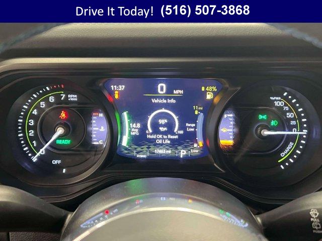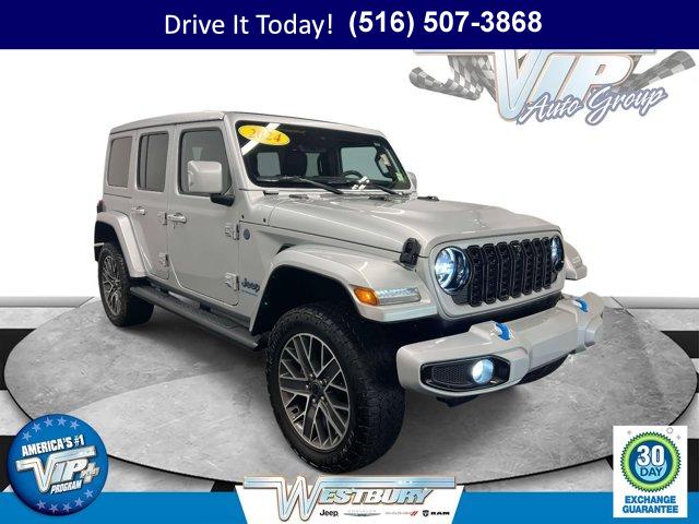 One owner. Jeep Certified. Silver Zynith Clearcoat exterior and Black interior, High Altitude trim. Heated Leather Seats, Navigation, Sunroof, Back-Up Camera, 4x4, Turbo Charged, SKY 1-TOUCH POWER TOP , MOPAR BLACK TUBULAR SIDE STEPS , ENGINE: 2.0L I4 DOHC DI TURBO PHEV, TRANSMISSION: 8-SPEED AUTO 8P75PH PHE. Alloy Wheels.BUY WITH CONFIDENCE7-Year/100,000-Mile Powertrain Limited warranty, Rental Car Allowance, 24-Hour Towing and Roadside Assistance, Carfax Vehicle History Report, 3-Month/3,000-Mile Maximum Care Coverage, Introductory 3-month subscription to SiriusXM? Satellite Radio Approx. Original Base Sticker Price: $67,800*.KEY FEATURES INCLUDELeather Seats, Navigation, 4x4, Heated Driver Seat, Back-Up CameraOPTION PACKAGESSKY 1-TOUCH POWER TOP, MOPAR BLACK TUBULAR SIDE STEPS, TRANSMISSION: 8-SPEED AUTO 8P75PH PHEV (STD), ENGINE: 2.0L I4 DOHC DI TURBO PHEV (STD). Jeep High Altitude with Silver Zynith Clearcoat exterior and Black interior features a 4 Cylinder Engine with 375 HP at 5250 RPM*.MORE ABOUT USWe hand select the finest automobiles possible, recondition as required so you do not have to worry about anything shortly down the road. Our Certified vehicles for example all have more than 50% brake life, most have brand new brakes installed front and rear and it does not end there.WESTBURY VIPAmericas #1 VIP Plus Program includes Complimentary Loaner Cars, UnlimitedOil & Filter changes for 1 yr. & then included with every factorymaintenance, Courtesy Shuttle to work, home or any other location, ExpressLube 30 minutes or less w/ no appointment necessary, Complimentary NYSI, 24/7 Rescue & Towing.