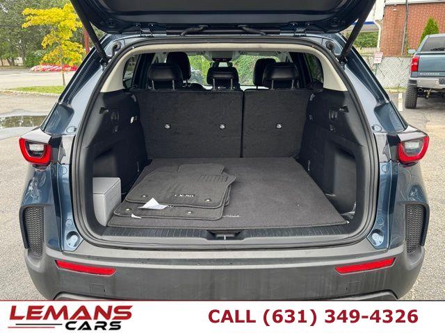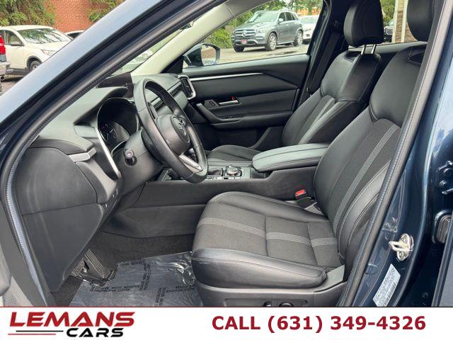 4 Cylinder Engine, ABS, 4-Wheel Disc Brakes, 6-Speed A/T, A/C, A/T, Adaptive Cruise Control, Adjustable Steering Wheel, All Wheel Drive, Aluminum Wheels, AM/FM Stereo, Transmission w/Dual Shift Mode, Automatic Headlights, Automatic Highbeams, Auxiliary Audio Input, Back-Up Camera, Blind Spot Monitor, Brake Actuated Limited Slip Differential, Brake Assist, Bucket Seats, Child Safety Locks, Climate Control, Temporary Spare Tire, Cross-Traffic Alert, Cruise Control, Daytime Running Lights, Driver Air Bag, Driver Illuminated Vanity Mirror, Driver Adjustable Lumbar, Driver Monitoring, Driver Vanity Mirror, Multi-Zone A/C, Stability Control, Front Collision Mitigation, Floor Mats, Gasoline Fuel, HD Radio, Heated Front Seat(s), Heated Mirrors, Integrated Turn Signal Mirrors, Intermittent Wipers, Keyless Entry, Keyless Start, Knee Air Bag, Lane Departure Warning, Lane Keeping Assist, Leather Steering Wheel, LED Headlights, MP3 Capability, Telematics, Pass-Through Rear Seat, Passenger Air Bag, Passenger Air Bag Sensor, Passenger Illuminated Visor Mirror, Passenger Vanity Mirror, Power Door Locks, Power Mirror(s), Power Driver Seat, Power Liftgate, Power Steering, Power Windows, Privacy Glass, Rain Sensing Wipers, Rear Bench Seat, Rear Defrost, Rear Head Air Bag, Rear Spoiler, Remote Trunk Release, Requires Subscription, Front Side Air Bag, Front Head Air Bag, Smart Device Integration, Steering Wheel Audio Controls, Tire Pressure Monitor, Tires - Front All-Season, Tires - Rear All-Season, Traction Control, Trip Computer, Variable Speed Intermittent Wipers, Immobilizer, WiFi Hotspot, Bluetooth Connection, Black Bodyside Cladding, Black Wheel Well Trim and Black Fender Flares, Black Grille, Black Power Heated Side Mirrors w/Manual Folding and Turn Signal Indicator, Black Rear Bumper w/Black Rub Strip/Fascia Accent and Chrome Bumper Insert, Black Side Windows Trim, Body-Colored Door Handles, Body-Colored Front Bumper w/Black Rub Strip/Fascia Accent, Compact Spare Tire Mounted Inside Under Cargo, Deep Tinted Glass, Fixed Rear Window w/Wiper and Defroster, Fully Galvanized Steel Panels, Headlights-Automatic Highbeams, LED Brakelights, Lip Spoiler, Manual-Leveling Auto On/Off Projector Beam Led Low/High Beam Auto High-Beam Daytime Running Lights Preference Setting Headlamps w/Delay-Off, Perimeter/Approach Lights, Power Liftgate Rear Cargo Access, Rain Detecting Variable Intermittent Wipers w/Heated Wiper Park, Steel Spare Wheel, Tailgate/Rear Door Lock Included w/Power Door Locks, Tires: P225/65R17 All-Season, Wheels: 17" x 7J Aluminum Alloy -inc: Black metallic finish, 1 Seatback Storage Pocket, 2 12V DC Power Outlets, 60-40 Folding Bench Front Facing Fold Forward Seatback Rear Seat, Air Filtration, Cargo Space Lights, Carpet Floor Trim, Cruise Control w/Steering Wheel Controls, Day-Night Rearview Mirror, Delayed Accessory Power, Digital/Analog Appearance, Driver And Passenger Visor Vanity Mirrors w/Driver And Passenger Illumination, Driver And Passenger Auxiliary Mirror, Driver Foot Rest, Driver Information Center, Driver Seat, Dual Zone Front Automatic Air Conditioning, Fade-To-Off Interior Lighting, FOB Controls -inc: Keyfob Cargo Access, Front Center Armrest and Rear Center Armrest, Front Cupholder, Front Map Lights, Full Carpet Floor Covering -inc: Carpet Front And Rear Floor Mats, Full Cloth Headliner, Full Floor Console w/Covered Storage, Mini Overhead Console w/Storage and 2 12V DC Power Outlets, Gauges -inc: Speedometer, Odometer, Engine Coolant Temp, Tachometer, Trip Odometer and Trip Computer, Glove Box, Half Leatherette Seat Trim, Heated Front Bucket Seats -inc: 3 level heat adjustments, 8-way power adjustable driver's seat w/power lumbar support and 4-way manual adjustable passenger seat, HVAC -inc: Underseat Ducts and Console Ducts, Immobilizer, Instrument Panel Covered Bin, Driver / Passenger And Rear Door Bins, Interior Trim -inc: Metal-Look Instrument Panel Insert, Piano Black Console Insert, Metal-Look Interior Accents and Leatherette Upholstered Dashboard, Leather Steering Wheel, Leather/Metal-Look Gear Shifter Material, Leatherette Door Trim Insert, Manual Adjustable Front Head Restraints and Manual Adjustable Rear Head Restraints, Manual Tilt/Telescoping Steering Column, Mazda Radar Cruise Control (MRCC) with Stop & Go, Mobile Hotspot Internet Access, Outside Temp Gauge, Passenger Seat, Power 1st Row Windows w/Front And Rear 1-Touch Up/Down, Power Door Locks w/Autolock Feature, Power Fuel Flap Locking Type, Power Rear Windows, Proximity Key For Doors And Push Button Start, Rear Cupholder, Remote Keyless Entry w/Integrated Key Transmitter, Illuminated Entry, Illuminated Ignition Switch and Panic Button, Remote Releases -Inc: Power Cargo Access, Seats w/Cloth Back Material, Smart Device Integration, Smart Device Remote Engine Start, Tracker System, Trip Computer, Trunk/Hatch Auto-Latch, Valet Function, 100 Amp Alternator, 15.9 Gal. Fuel Tank, 4-Wheel Disc Brakes w/4-Wheel ABS, Front Vented Discs, Brake Assist, Hill Hold Control and Electric Parking Brake, 4.367 Axle Ratio, 60-Amp/Hr Maintenance-Free Battery w/Run Down Protection, Automatic Full-Time All-Wheel, Brake Actuated Limited Slip Differential, Electric Power-Assist Speed-Sensing Steering, Engine: 2.5L SKYACTIV-G DOHC 16-Valve 4-Cylinder -inc: cylinder deactivation, Front Anti-Roll Bar, Gas-Pressurized Shock Absorbers, GVWR: 4, 848 lbs, Permanent Locking Hubs, Quasi-Dual Stainless Steel Exhaust w/Chrome Tailpipe Finisher, Strut Front Suspension w/Coil Springs, Torsion Beam Rear Suspension w/Coil Springs, Transmission w/Driver Selectable Mode and Sequential Shift Control, Transmission: 6-Speed SKYACTIV-Drive Automatic -inc: manual-shift mode, ABS And Driveline Traction Control, Advanced Smart Brake Support, Airbag Occupancy Sensor, Back-Up Camera, Blind Spot Monitoring (BSM) Blind Spot, Collision Mitigation-Front, Curtain 1st And 2nd Row Airbags, Driver And Passenger Knee Airbag, Driver Monitoring-Alert, Dual Stage Driver And P