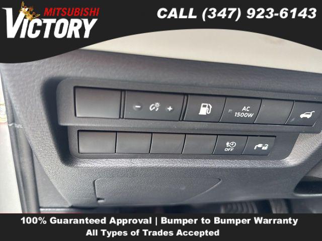 • Axle Ratio: TBD, Radio: AM/FM 9" Smartphone Link Display Audio, 4-Wheel Disc Brakes, Emergency communication system: Mitsubishi Connect w/ 24-month trial, Android Auto & Apple CarPlay, Auto High-beam Headlights, AM/FM radio: SiriusXM, Front Center Armrest w/Storage, Speed-Sensitive Wipers, Auto-dimming Rear-View mirror, Front beverage holders, Variably intermittent wipers, Turn signal indicator mirrors, Trip computer, Traction control, Tilt steering wheel, Telescoping steering wheel, Steering wheel mounted audio controls, Split folding rear seat, Speed control, Security system, Remote keyless entry, Reclining 3rd row seat, Rear window wiper, Rear window defroster, Rear side impact airbag, Rear seat center armrest, Rear anti-roll bar, Rear air conditioning, Rain sensing wipers, Radio data system, Power windows, Power steering, Power passenger seat, Power driver seat, Power door mirrors, Passenger vanity mirror, Passenger door bin, Panic alarm, Overhead console, Overhead airbag, Outside temperature display, Occupant sensing airbag, Memory seat, Low tire pressure warning, Leather steering wheel, Knee airbag, Illuminated entry, Heated rear seats, Heated front seats, Heated door mirrors, Headlight cleaning, Fully automatic headlights, Front reading lights, Front fog lights, Front dual zone A/C, Front anti-roll bar, Four wheel independent suspension, Dual front side impact airbags, Dual front impact airbags, Driver vanity mirror, Driver door bin, Bumpers: body-color, Brake assist, Automatic temperature control, Alloy wheels, ABS brakes, 3rd row seats: split-bench, Tachometer, Spoiler, Power Liftgate, Navigation System, Leather Shift Knob, Front Bucket Seats, Electronic Stability Control, Air Conditioning