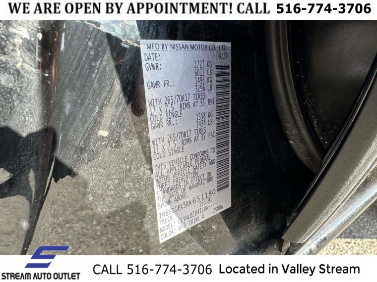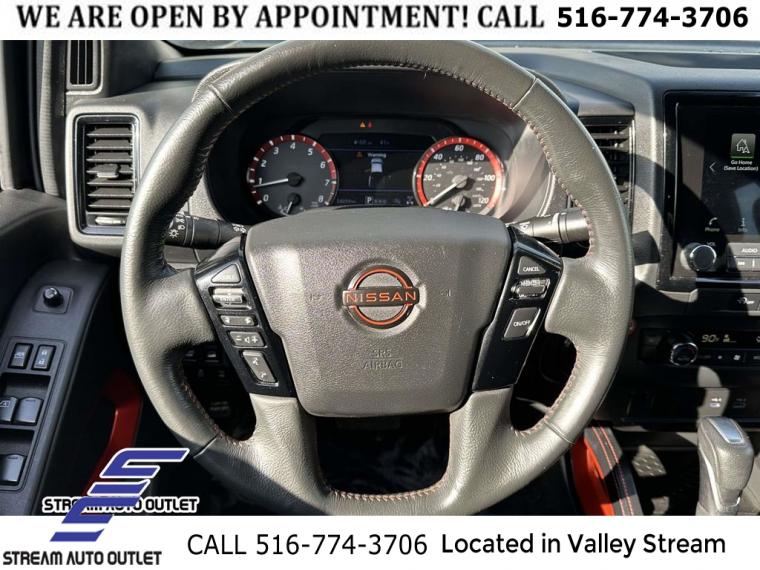 Navigation System, 6 Speakers, AM/FM radio: SiriusXM, Fender Premium Audio System w/10 Speakers, Radio data system, Radio: 1CD/SXM/AM/FM/AUX/USB/MP3/WMA Audio System, Air Conditioning, Automatic temperature control, Front dual zone A/C, Power driver seat, Power steering, Power windows, Remote keyless entry, Steering wheel mounted audio controls, Speed-sensing steering, Traction control, 4-Wheel Disc Brakes, ABS brakes, Anti-whiplash front head restraints, Dual front impact airbags, Dual front side impact airbags, Emergency communication system, Front anti-roll bar, Front wheel independent suspension, Knee airbag, Low tire pressure warning, Occupant sensing airbag, Overhead airbag, Rear anti-roll bar, Rear side impact airbag, Brake assist, Electronic Stability Control, Delay-off headlights, Front fog lights, Fully automatic headlights, Panic alarm, Security system, Speed control, Bumpers: body-color, Power door mirrors, Rear step bumper, Compass, Driver door bin, Driver vanity mirror, Front reading lights, Illuminated entry, Leather Shift Knob, Leather steering wheel, NissanConnect featuring Apple CarPlay and Android Auto, Overhead console, Passenger vanity mirror, PRO-4X Carpeted Floor Mats, Rear seat center armrest, Tachometer, Tilt steering wheel, Trip computer, Voltmeter, Front Bucket Seats, Front Center Armrest, PRO Embroidered Premium Cloth Seat Trim, Split folding rear seat, Passenger door bin, 17" Painted Alloy Wheels, Alloy wheels, Variably intermittent wipers, 3.692 Axle Ratio, * NYS INSPECTION INCLUDED *, * FULL INTERIOR / EXTERIOR DETAIL *, * BLUETOOTH *, * LIMITED NYS LEMON LAW WARRANTY INCLUDED *, *FRESH OIL CHANGE *, * 150 MULTI POINT INSPECTION *