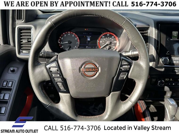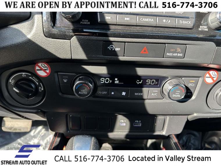 Navigation System, 6 Speakers, AM/FM radio: SiriusXM, Fender Premium Audio System w/10 Speakers, Radio data system, Radio: 1CD/SXM/AM/FM/AUX/USB/MP3/WMA Audio System, Air Conditioning, Automatic temperature control, Front dual zone A/C, Power driver seat, Power steering, Power windows, Remote keyless entry, Steering wheel mounted audio controls, Speed-sensing steering, Traction control, 4-Wheel Disc Brakes, ABS brakes, Anti-whiplash front head restraints, Dual front impact airbags, Dual front side impact airbags, Emergency communication system, Front anti-roll bar, Front wheel independent suspension, Knee airbag, Low tire pressure warning, Occupant sensing airbag, Overhead airbag, Rear anti-roll bar, Rear side impact airbag, Brake assist, Electronic Stability Control, Delay-off headlights, Front fog lights, Fully automatic headlights, Panic alarm, Security system, Speed control, Bumpers: body-color, Drop-In Bed Liner & Bumper Step, Power door mirrors, Rear step bumper, Compass, Driver door bin, Driver vanity mirror, Front reading lights, Illuminated entry, Leather Shift Knob, Leather steering wheel, NissanConnect featuring Apple CarPlay and Android Auto, Overhead console, Passenger vanity mirror, PRO-4X Carpeted Floor Mats, Rear seat center armrest, Tachometer, Tilt steering wheel, Trip computer, Voltmeter, Front Bucket Seats, Front Center Armrest, PRO Embroidered Premium Cloth Seat Trim, Split folding rear seat, Passenger door bin, 17" Painted Alloy Wheels, Alloy wheels, Variably intermittent wipers, 3.692 Axle Ratio, * NYS INSPECTION INCLUDED *, * FULL INTERIOR / EXTERIOR DETAIL *, * BACK UP CAMERA *, * NAVIGATION SYSTEM *, * BLUETOOTH *, * LIMITED NYS LEMON LAW WARRANTY INCLUDED *, *FRESH OIL CHANGE *, * 150 MULTI POINT INSPECTION *, APPLE CAR PLAY/ANDROID AUTO