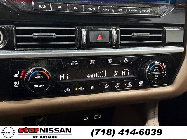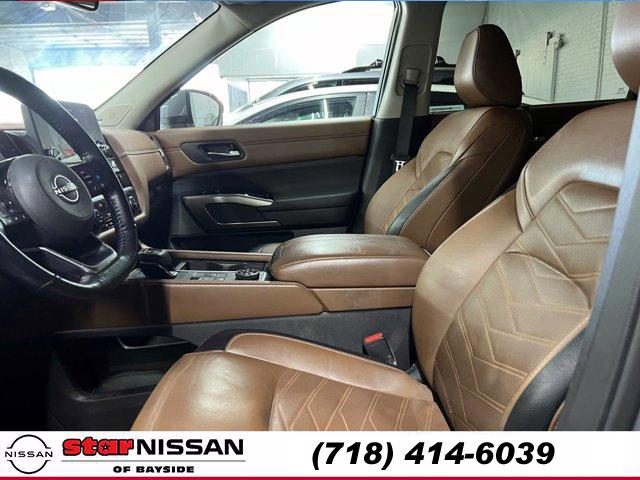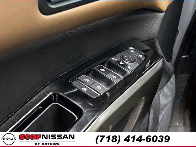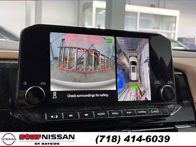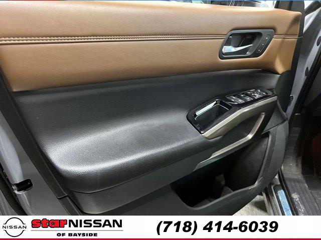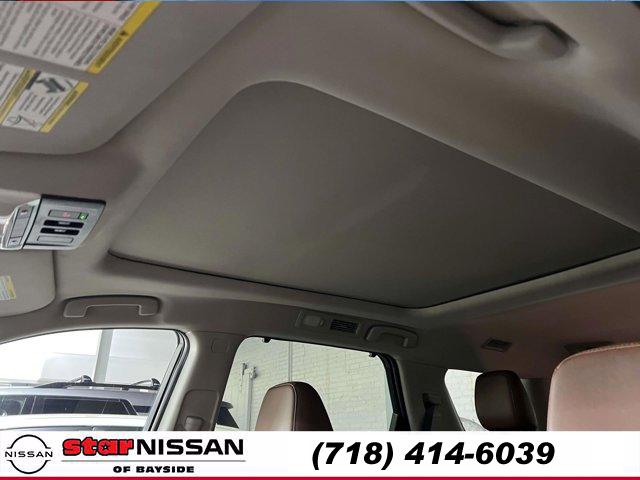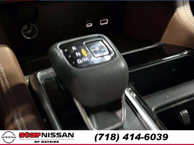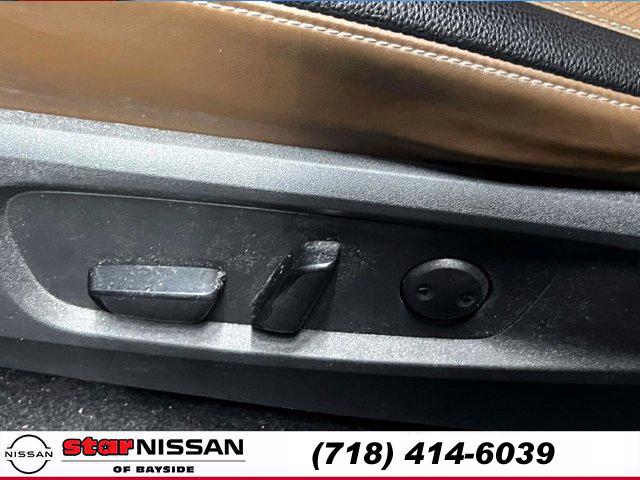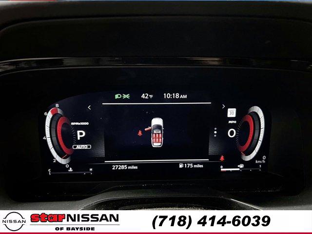 [S10] LED FOG LAMPS, CHESTNUT SEMI-ANILINE LEATHER-APPOINTED SEATING SURFACES -inc: quilting, BOULDER GRAY PEARL, [M92] CARGO PACKAGE -inc: dividers and console net Cargo Area Protector Cargo Net First Aid Kit, [B93] CROSS BARS, [L92] BENCH SEAT CARPETED FLOOR MATS (SET OF 4), [H92] NISSAN USB CHARGING CABLE SET, [B92] BLACK SPLASH GUARDS (SET OF 4), Smart Device Integration, Requires Subscription, Four Wheel Drive, Power Steering, ABS, 4-Wheel Disc Brakes, Brake Assist, Brake Actuated Limited Slip Differential, Aluminum Wheels, Tires - Front Performance, Tires - Rear Performance, Temporary Spare Tire, Sun/Moonroof, Generic Sun/Moonroof, Panoramic Roof, Heated Mirrors, Power Mirror(s), Integrated Turn Signal Mirrors, Power Folding Mirrors, Rear Defrost, Privacy Glass, Intermittent Wipers, Variable Speed Intermittent Wipers, Rain Sensing Wipers, Rear Spoiler, Remote Trunk Release, Power Liftgate, Power Door Locks, Daytime Running Lights, Automatic Headlights, LED Headlights, Automatic Highbeams, AM/FM Stereo, Premium Sound System, Satellite Radio, MP3 Capability, Bluetooth Connection, Smart Device Integration, Requires Subscription, MP3 Capability, Steering Wheel Audio Controls, Auxiliary Audio Input, Premium Sound System, Bluetooth Connection, Power Driver Seat, Power Passenger Seat, Bucket Seats, Heated Front Seat(s), Driver Adjustable Lumbar, Passenger Adjustable Lumbar, Seat Memory, Cooled Front Seat(s), Pass-Through Rear Seat, Heated Rear Seat(s), Rear Bench Seat, Adjustable Steering Wheel, Trip Computer, Power Windows, WiFi Hotspot, 3rd Row Seat, Leather Steering Wheel, Heated Steering Wheel, Keyless Entry, Power Door Locks, Keyless Start, Keyless Entry, Power Door Locks, Hands-Free Liftgate, Universal Garage Door Opener, Cruise Control, Adaptive Cruise Control, Climate Control, Multi-Zone A/C, A/C, A/C, Rear A/C, Leather Seats, Driver Vanity Mirror, Passenger Vanity Mirror, Driver Illuminated Vanity Mirror, Passenger Illuminated Visor Mirror, Auto-Dimming Rearview Mirror, Smart Device Integration, Remote Engine Start, Keyless Start, Mirror Memory, Seat Memory, Navigation System, Power Windows, Power Door Locks, Trip Computer, Heads-Up Display, Mirror Memory, Seat Memory, Security System, Immobilizer, Cruise Control Steering Assist, Traction Control, Stability Control, Traction Control, Front Side Air Bag, Cross-Traffic Alert, Rear Collision Mitigation, Front Collision Mitigation, Driver Monitoring, Telematics, Requires Subscription, Blind Spot Monitor, Lane Departure Warning, Lane Keeping Assist, Lane Departure Warning, Rear Parking Aid, Aerial View Display System, Tire Pressure Monitor, Driver Air Bag, Passenger Air Bag, Front Head Air Bag, Rear Head Air Bag, Passenger Air Bag Sensor, Front Side Air Bag, Rear Side Air Bag, Knee Air Bag, Child Safety Locks, Driver Restriction Features, Back-Up Camera