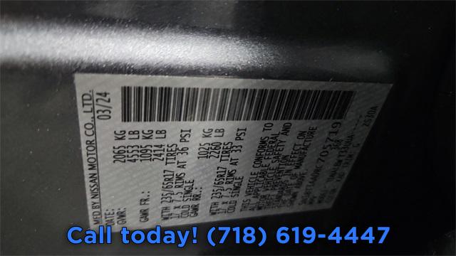 4 Speakers, AM/FM radio: SiriusXM, Radio data system, Radio: AM/FM NissanConnect, Air Conditioning, Rear window defroster, Power steering, Power windows, Remote keyless entry, Steering wheel mounted audio controls, Four wheel independent suspension, Traction control, 4-Wheel Disc Brakes, ABS brakes, Dual front impact airbags, Dual front side impact airbags, Front anti-roll bar, Knee airbag, Low tire pressure warning, Occupant sensing airbag, Overhead airbag, Rear anti-roll bar, Rear side impact airbag, Blind Spot Warning, Brake assist, Electronic Stability Control, Rear Parking Sensors, Auto High-beam Headlights, Delay-off headlights, Fully automatic headlights, First Aid Kit, Panic alarm, Speed control, Bumpers: body-color, Power door mirrors, Spoiler, Cloth Seat Trim, Driver door bin, Driver vanity mirror, Floor Mats w/1-Piece Cargo Area Protector, Front reading lights, Illuminated entry, NissanConnect featuring Apple CarPlay and Android Auto, Outside temperature display, Overhead console, Passenger vanity mirror, Rear seat center armrest, Tachometer, Telescoping steering wheel, Tilt steering wheel, Trip computer, Front Bucket Seats, Front Center Armrest, Split folding rear seat, Passenger door bin, 17" Aluminum Alloy Wheels, Alloy wheels, Rear window wiper, Speed-Sensitive Wipers, Variably intermittent wipers, 5.676 Axle Ratio