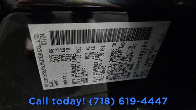 6 Speakers, AM/FM radio: SiriusXM, Radio data system, Radio: AM/FM NissanConnect, Air Conditioning, Automatic temperature control, Front dual zone A/C, Rear window defroster, Power driver seat, Power steering, Power windows, Remote keyless entry, Steering wheel mounted audio controls, Four wheel independent suspension, Traction control, 4-Wheel Disc Brakes, ABS brakes, Dual front impact airbags, Dual front side impact airbags, Emergency communication system: NissanConnect Services, Front anti-roll bar, Knee airbag, Low tire pressure warning, Occupant sensing airbag, Overhead airbag, Rear anti-roll bar, Rear side impact airbag, Power Liftgate, Brake assist, Electronic Stability Control, Rear Parking Sensors, Auto High-beam Headlights, Delay-off headlights, Fully automatic headlights, First Aid Kit, Panic alarm, Speed control, Bumpers: body-color, Heated door mirrors, Power door mirrors, Spoiler, Driver door bin, Driver vanity mirror, Floor Mats w/1-Piece Cargo Area Protector, Front reading lights, Illuminated entry, NissanConnect featuring Apple CarPlay and Android Auto, Outside temperature display, Overhead console, Passenger vanity mirror, Rear seat center armrest, Tachometer, Telescoping steering wheel, Tilt steering wheel, Trip computer, Cloth Seat Trim w/Patterned Inserts, Front Bucket Seats, Front Center Armrest, Split folding rear seat, Passenger door bin, Alloy wheels, Wheels: 18" Dark Painted Machine Finished Alloy, Rear window wiper, Speed-Sensitive Wipers, Variably intermittent wipers, 5.676 Axle Ratio