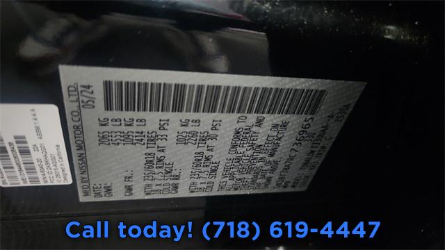 SV Premium Package, 6 Speakers, AM/FM radio: SiriusXM, Radio data system, Radio: AM/FM NissanConnect, Air Conditioning, Automatic temperature control, Front dual zone A/C, Rear window defroster, Power driver seat, Power steering, Power windows, Remote keyless entry, Steering wheel mounted audio controls, Four wheel independent suspension, Traction control, 4-Wheel Disc Brakes, ABS brakes, Dual front impact airbags, Dual front side impact airbags, Emergency communication system: NissanConnect Services, Front anti-roll bar, Knee airbag, Low tire pressure warning, Occupant sensing airbag, Overhead airbag, Rear anti-roll bar, Rear side impact airbag, Panoramic Moonroof, Chrome Rear Bumper Protector, Power Liftgate, Brake assist, Electronic Stability Control, Rear Parking Sensors, Auto High-beam Headlights, Delay-off headlights, Fully automatic headlights, First Aid Kit, Panic alarm, Speed control, Black Splash Guards (Set of 4), Bumpers: body-color, Heated door mirrors, Power door mirrors, Spoiler, Driver door bin, Driver vanity mirror, Floor Mats w/1-Piece Cargo Area Protector, Frameless Rearview Mirror w/Universal Remote, Front reading lights, Heated Leather-Wrapped Steering Wheel, Illuminated entry, Leatherette Door Trim Inserts w/Stitch, NissanConnect featuring Apple CarPlay and Android Auto, Outside temperature display, Overhead console, Passenger vanity mirror, Rear Door Sunshades, Rear Personal Lights, Rear seat center armrest, Tachometer, Telescoping steering wheel, Tilt steering wheel, Trip computer, Cloth Seat Trim w/Patterned Inserts, Front Bucket Seats, Front Center Armrest, Heated Front Seats, Prima-Tex Leatherette Seat Trim w/Perforation, Split folding rear seat, Passenger door bin, Silver Painted Roof Rails, Alloy wheels, Wheels: 18" Dark Painted Machine Finished Alloy, Rear window wiper, Speed-Sensitive Wipers, Variably intermittent wipers, 5.676 Axle Ratio