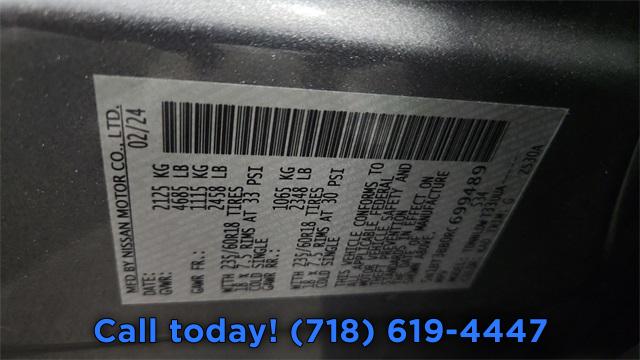 6 Speakers, AM/FM radio: SiriusXM, Radio data system, Radio: AM/FM NissanConnect, Air Conditioning, Automatic temperature control, Front dual zone A/C, Rear window defroster, Power driver seat, Power steering, Power windows, Remote keyless entry, Steering wheel mounted audio controls, Four wheel independent suspension, Traction control, 4-Wheel Disc Brakes, ABS brakes, Dual front impact airbags, Dual front side impact airbags, Emergency communication system: NissanConnect Services, Front anti-roll bar, Knee airbag, Low tire pressure warning, Occupant sensing airbag, Overhead airbag, Rear anti-roll bar, Rear side impact airbag, Power Liftgate, Brake assist, Electronic Stability Control, Rear Parking Sensors, Auto High-beam Headlights, Delay-off headlights, Fully automatic headlights, Panic alarm, Speed control, Bumpers: body-color, Heated door mirrors, Power door mirrors, Spoiler, Driver door bin, Driver vanity mirror, Front reading lights, Illuminated entry, NissanConnect featuring Apple CarPlay and Android Auto, Outside temperature display, Overhead console, Passenger vanity mirror, Rear seat center armrest, Tachometer, Telescoping steering wheel, Tilt steering wheel, Trip computer, Cloth Seat Trim w/Patterned Inserts, Front Bucket Seats, Front Center Armrest, Split folding rear seat, Passenger door bin, Alloy wheels, Wheels: 18" Dark Painted Machine Finished Alloy, Rear window wiper, Speed-Sensitive Wipers, Variably intermittent wipers, 5.676 Axle Ratio