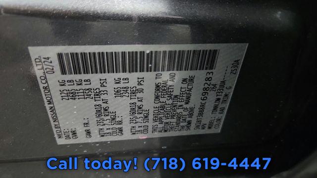 6 Speakers, AM/FM radio: SiriusXM, Radio data system, Radio: AM/FM NissanConnect, Air Conditioning, Automatic temperature control, Front dual zone A/C, Rear window defroster, Power driver seat, Power steering, Power windows, Remote keyless entry, Steering wheel mounted audio controls, Four wheel independent suspension, Traction control, 4-Wheel Disc Brakes, ABS brakes, Dual front impact airbags, Dual front side impact airbags, Emergency communication system: NissanConnect Services, Front anti-roll bar, Knee airbag, Low tire pressure warning, Occupant sensing airbag, Overhead airbag, Rear anti-roll bar, Rear side impact airbag, Power Liftgate, Brake assist, Electronic Stability Control, Rear Parking Sensors, Auto High-beam Headlights, Delay-off headlights, Fully automatic headlights, Panic alarm, Speed control, Bumpers: body-color, Heated door mirrors, Power door mirrors, Spoiler, Driver door bin, Driver vanity mirror, Front reading lights, Illuminated entry, NissanConnect featuring Apple CarPlay and Android Auto, Outside temperature display, Overhead console, Passenger vanity mirror, Rear seat center armrest, Tachometer, Telescoping steering wheel, Tilt steering wheel, Trip computer, Cloth Seat Trim w/Patterned Inserts, Front Bucket Seats, Front Center Armrest, Split folding rear seat, Passenger door bin, Alloy wheels, Wheels: 18" Dark Painted Machine Finished Alloy, Rear window wiper, Speed-Sensitive Wipers, Variably intermittent wipers, 5.676 Axle Ratio
