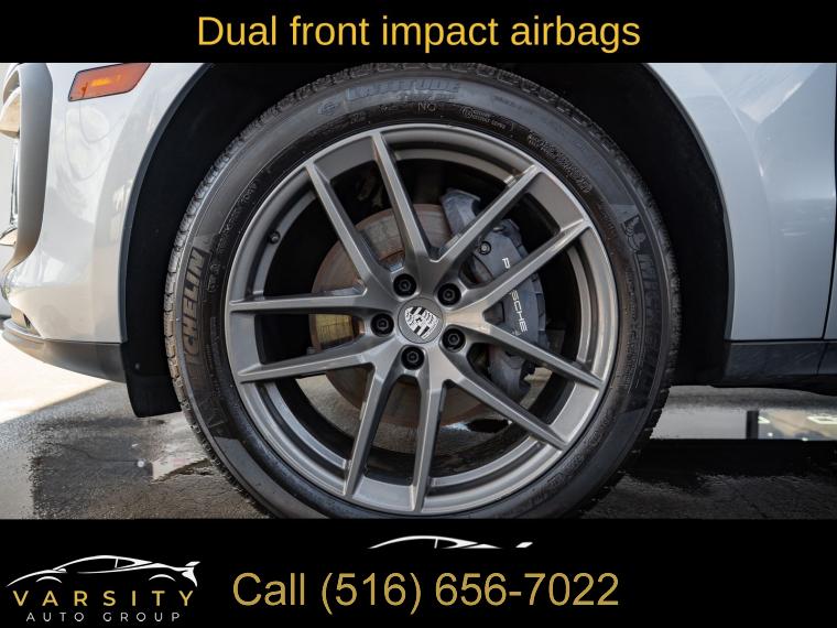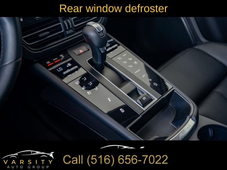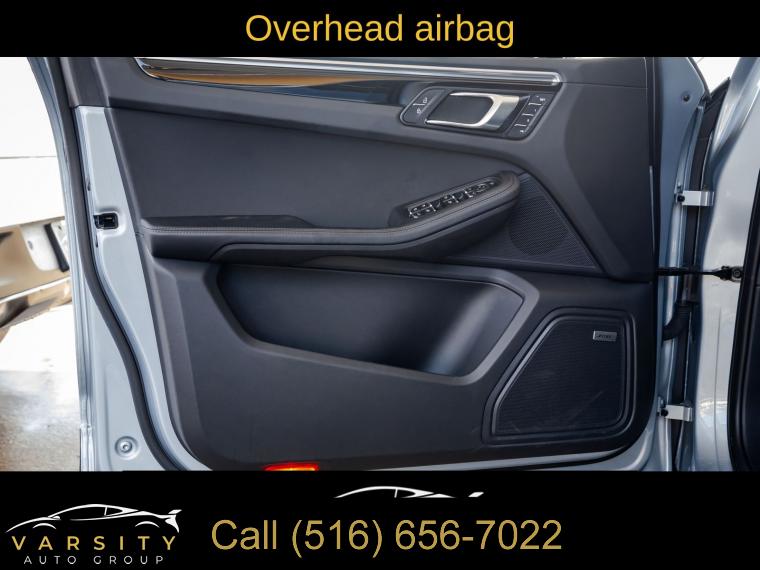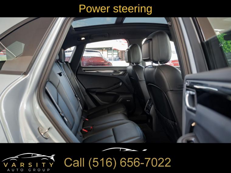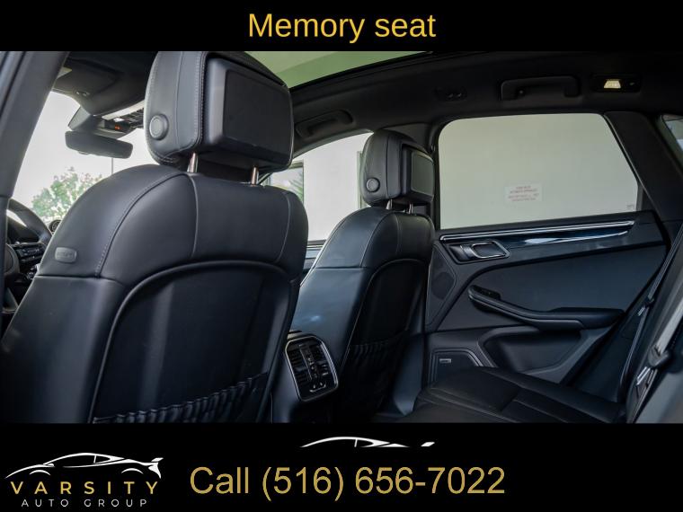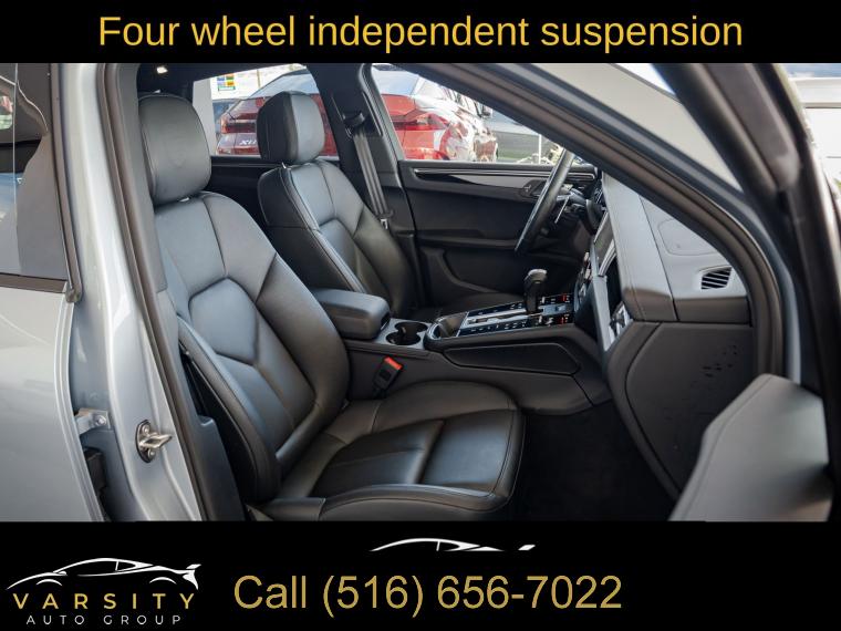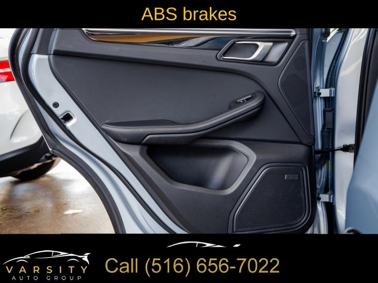 Navigation System, Macan T Interior Package Seat Trim, 8 Speakers, AM/FM radio: SiriusXM, Radio data system, Air Conditioning, Automatic temperature control, Front dual zone A/C, Rear air conditioning, Rear window defroster, Memory seat, Porsche Communication Management, Power driver seat, Power steering, Power windows, Remote keyless entry, Steering wheel mounted audio controls, Four wheel independent suspension, Speed-sensing steering, Traction control, 4-Wheel Disc Brakes, ABS brakes, Dual front impact airbags, Dual front side impact airbags, Emergency communication system: Car Connect Services, Front anti-roll bar, Low tire pressure warning, Occupant sensing airbag, Overhead airbag, Rear anti-roll bar, Rear side impact airbag, Power Liftgate, Brake assist, Electronic Stability Control, Exterior Parking Camera Rear, Delay-off headlights, Fully automatic headlights, Panic alarm, Security system, Active Cruise Control, Speed control, Auto-dimming door mirrors, Bumpers: body-color, Heated door mirrors, Power door mirrors, Spoiler, Turn signal indicator mirrors, Apple CarPlay, Auto-dimming Rear-View mirror, Driver door bin, Driver vanity mirror, Front reading lights, Garage door transmitter: HomeLink, Heated 8-Way Sport Seats, Heated steering wheel, Illuminated entry, Leather Shift Knob, Leather steering wheel, Outside temperature display, Overhead console, Passenger vanity mirror, Rear reading lights, Rear seat center armrest, Sport steering wheel, Tachometer, Telescoping steering wheel, Tilt steering wheel, Trip computer, Front Bucket Seats, Front Center Armrest, Heated front seats, Power passenger seat, Split folding rear seat, Passenger door bin, Alloy wheels, Wheels: 20" Macan S in Dark Titanium, Rain sensing wipers, Rear window wiper, Variably intermittent wipers, 4.67 Axle Ratio