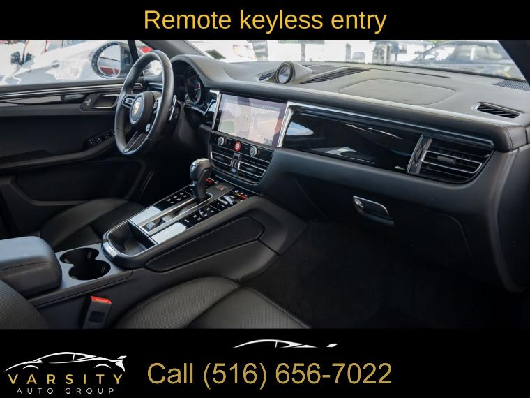 Navigation System, Macan T Interior Package Seat Trim, 8 Speakers, AM/FM radio: SiriusXM, Radio data system, Air Conditioning, Automatic temperature control, Front dual zone A/C, Rear air conditioning, Rear window defroster, Memory seat, Porsche Communication Management, Power driver seat, Power steering, Power windows, Remote keyless entry, Steering wheel mounted audio controls, Four wheel independent suspension, Speed-sensing steering, Traction control, 4-Wheel Disc Brakes, ABS brakes, Dual front impact airbags, Dual front side impact airbags, Emergency communication system: Car Connect Services, Front anti-roll bar, Low tire pressure warning, Occupant sensing airbag, Overhead airbag, Rear anti-roll bar, Rear side impact airbag, Power Liftgate, Brake assist, Electronic Stability Control, Exterior Parking Camera Rear, Delay-off headlights, Fully automatic headlights, Panic alarm, Security system, Active Cruise Control, Speed control, Auto-dimming door mirrors, Bumpers: body-color, Heated door mirrors, Power door mirrors, Spoiler, Turn signal indicator mirrors, Apple CarPlay, Auto-dimming Rear-View mirror, Driver door bin, Driver vanity mirror, Front reading lights, Garage door transmitter: HomeLink, Heated 8-Way Sport Seats, Heated steering wheel, Illuminated entry, Leather Shift Knob, Leather steering wheel, Outside temperature display, Overhead console, Passenger vanity mirror, Rear reading lights, Rear seat center armrest, Sport steering wheel, Tachometer, Telescoping steering wheel, Tilt steering wheel, Trip computer, Front Bucket Seats, Front Center Armrest, Heated front seats, Power passenger seat, Split folding rear seat, Passenger door bin, Alloy wheels, Wheels: 20" Macan S in Dark Titanium, Rain sensing wipers, Rear window wiper, Variably intermittent wipers, 4.67 Axle Ratio, 2024 Porsche Macan T, Dolomite Silver Metallic, Black w/Chalk Stitching w/Leather Package Seat Trim w/Deviated Stitching, 1 Owner, Clean CARFAX