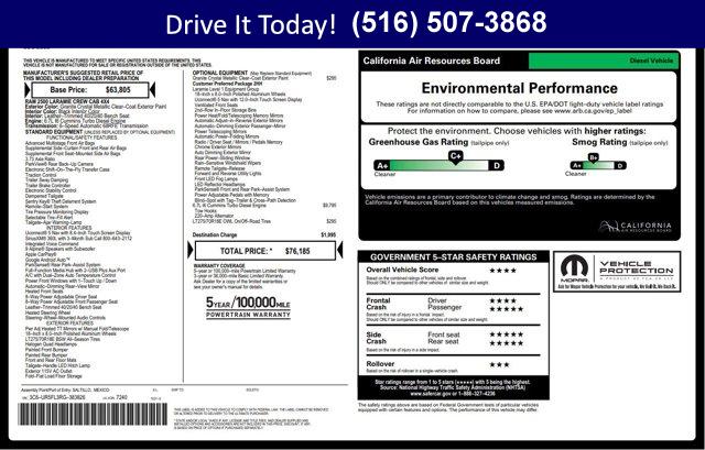 One owner. Laramie trim, Granite Crystal Metallic Clearcoat exterior and Black interior. Ram Certified. Heated Leather Seats, NAV, Premium Sound System, Back-Up Camera, Turbo, 4x4, Tow Hitch, ENGINE: 6.7L I6 CUMMINS TURBO DIESEL, TRANSMISSION: 6-SPEED AUTOMATIC (68RF. LARAMIE LEVEL 1 EQUIPMENT GROUP, Alloy Wheels.BUY WITH CONFIDENCE24-Hour Towing and Roadside Assistance, Car Rental Allowance, 7-Year/100,000-Mile Powertrain Limited Warranty, 3-Month introductory subscription to SiriusXM Satellite Radio, CARFAX Vehicle History Report, 3-Month/3,000-Mile Maximum Care Coverage Approx. Original Base Sticker Price: $63,800*.KEY FEATURES INCLUDELeather Seats, 4x4, Heated Driver Seat, Back-Up Camera, Premium Sound System.OPTION PACKAGESENGINE: 6.7L I6 CUMMINS TURBO DIESEL Selective Catalytic Reduction (Urea), Dual 730 Amp Maintenance Free Batteries, Cummins Turbo Diesel Badge, Heavy Duty Engine Cooling, Supplemental Heater, 220 Amp Alternator, Tow Hooks, Diesel Exhaust Brake, Front Bumper Sight Shields, Capless Fuel Fill w/o Discriminator, TRANSMISSION: 6-SPEED AUTOMATIC (68RFE), LARAMIE LEVEL 1 EQUIPMENT GROUP Blind Spot & Cross Path Detection, LED Tail Lamps, Power Adjustable Pedals w/Memory, For Details, Visit DriveUconnect.com, For More Info, Call 800-643-2112, 12 Touchscreen Display, Auto Power-Folding Mirrors, Front LED Fog Lamps, Mirror Running Lights, Alexa Built-In, Power Adjustable Convex Aux Mirrors, Forward & Reverse Utility Lights, Disassociated Touchscreen Display, Remote Tailgate Release, Center Hub, 2nd Row In Floor Storage Bins, Rear Window Defroster, Rain Sensitive Windshield Wipers, Rear Power Sliding Window, GPS Navigation, Auto Dim Exterior Mirror, SiriusXM w/360L, Connected Travel & Traffic Services, LED Reflector Headlamps, Foam Bottle Insert (Door Trim Panel), Off-Road Information Pages, Selectable Tire Fill Alert, Trailer Tow Pages, HD. Ram Laramie with Granite Crystal Metallic Clearcoat exterior and Black interior features a Straight 6 Cylinder Engine with 410 HP at 5600 RPM*.WHY BUY FROM USWe hand select the finest automobiles possible, recondition as required so you do not have to worry about anything shortly down the road. Our Certified vehicles for example all have more than 50% brake life, most have brand new brakes installed front and rear and it does not end there.WESTBURY VIPAmericas #1 VIP Plus Program includes Complimentary Loaner Cars, UnlimitedOil & Filter changes for 1 yr. & then included with every factorymaintenance, Courtesy Shuttle to work, home or any other location, ExpressLube 30 minutes or less w/ no appointment necessary, Complimentary NYSI, 24/7 Rescue & Towing.