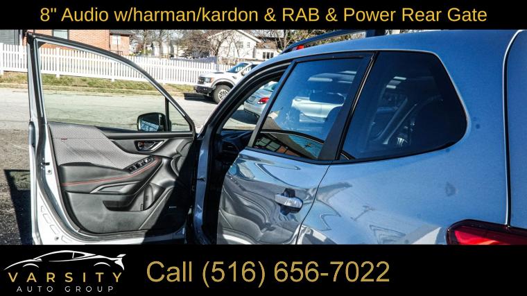 8" Audio w/harman/kardon & RAB & Power Rear Gate, 6 Speakers, AM/FM radio: SiriusXM, harman/kardon 9-Speaker Audio System, Radio data system, Radio: Subaru STARLINK 6.5" Multimedia Plus System, Radio: Subaru STARLINK 8.0" Multimedia Plus System, Air Conditioning, Automatic temperature control, Rear window defroster, Power driver seat, Power Rear Gate, Power steering, Power windows, Remote keyless entry, Steering wheel mounted audio controls, Four wheel independent suspension, Speed-sensing steering, Traction control, 4-Wheel Disc Brakes, ABS brakes, Anti-whiplash front head restraints, Dual front impact airbags, Dual front side impact airbags, Emergency communication system: STARLINK Safety and Security (Subscription Required), Front anti-roll bar, Knee airbag, Low tire pressure warning, Occupant sensing airbag, Overhead airbag, Rear anti-roll bar, Power moonroof: Panoramic, Brake assist, Electronic Stability Control, Exterior Parking Camera Rear, Auto High-beam Headlights, Front fog lights, Fully automatic headlights, Panic alarm, Security system, Speed control, Bumpers: body-color, Heated door mirrors, Power door mirrors, Roof rack: rails only, Spoiler, Turn signal indicator mirrors, Driver door bin, Driver vanity mirror, Front reading lights, Illuminated entry, Leather Shift Knob, Leather steering wheel, Outside temperature display, Overhead console, Passenger vanity mirror, Rear seat center armrest, Reverse Automatic Braking System (RAB), STARLINK/Apple CarPlay/Android Auto, Tachometer, Telescoping steering wheel, Tilt steering wheel, Trip computer, Front Bucket Seats, Front Center Armrest, Heated Front Bucket Seats, Heated front seats, Split folding rear seat, Sport Cloth Upholstery, Passenger door bin, Alloy wheels, Wheels: 18" x 7.0 J Black Finish Aluminum-Alloy, Rear window wiper, Variably intermittent wipers, 3.70 Axle Ratio, The Price you See, is the Price You Pay!!!, 2024 Subaru Forester Sport, Ice Silver Metallic, 1 Owner, Clean CARFAX
