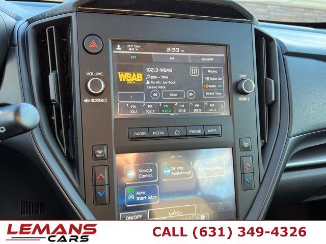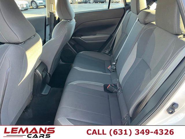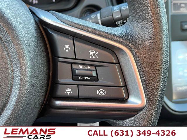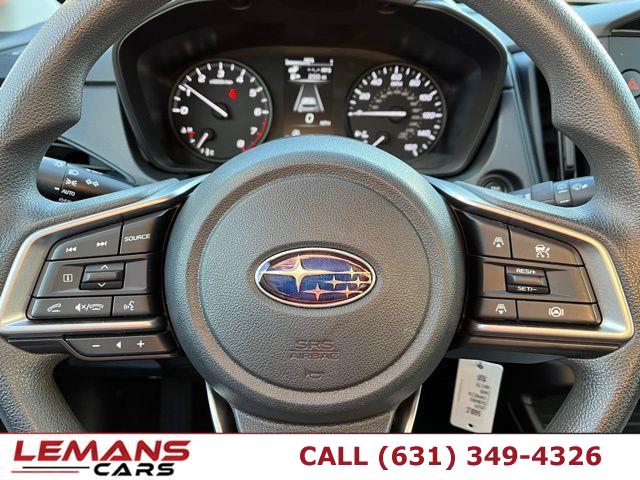 4 Cylinder Engine, ABS, 4-Wheel Disc Brakes, A/C, A/T, Adaptive Cruise Control, Adjustable Steering Wheel, Security System, All Wheel Drive, AM/FM Stereo, Automatic Headlights, Automatic Highbeams, Auxiliary Audio Input, Back-Up Camera, Brake Assist, Bucket Seats, Child Safety Locks, Climate Control, Cloth Seats, CVT Transmission, Cruise Control, Cruise Control Steering Assist, Daytime Running Lights, Driver Air Bag, Driver Monitoring, Driver Vanity Mirror, Multi-Zone A/C, Stability Control, Front Collision Mitigation, Floor Mats, Gasoline Fuel, HD Radio, Intermittent Wipers, Keyless Entry, Knee Air Bag, Lane Departure Warning, Lane Keeping Assist, LED Headlights, MP3 Capability, Pass-Through Rear Seat, Passenger Air Bag, Passenger Air Bag Sensor, Passenger Vanity Mirror, Power Door Locks, Power Mirror(s), Power Steering, Power Windows, Rear Bench Seat, Rear Defrost, Rear Head Air Bag, Rear Spoiler, Remote Trunk Release, Requires Subscription, Satellite Radio, Front Side Air Bag, Front Head Air Bag, Smart Device Integration, Steering Wheel Audio Controls, Tire Pressure Monitor, Tires - Front Performance, Tires - Rear Performance, Traction Control, Trip Computer, Variable Speed Intermittent Wipers, Immobilizer, Bluetooth Connection, Auto On/Off Projector Beam Led Low/High Beam Daytime Running Directionally Adaptive Auto High-Beam Headlamps, Black Grille, Black Power Side Mirrors w/Manual Folding, Black Side Windows Trim, Black Front Windshield Trim and Black Rear Window Trim, Body-Colored Door Handles, Body-Colored Front Bumper w/Black Bumper Insert, Body-Colored Rear Bumper w/Black Rub Strip/Fascia Accent, Fixed Rear Window w/Wiper and Defroster, Galvanized Steel/Aluminum Panels, Headlights-Automatic Highbeams, LED Brakelights, Liftgate Rear Cargo Access, Light Tinted Glass, Lip Spoiler, Perimeter/Approach Lights, Tailgate/Rear Door Lock Included w/Power Door Locks, Tire Mobility Kit, Tires: 205/55R16 99H AS, Variable Intermittent Wipers, Wheels w/Full Wheel Covers, Wheels: 16" x 6.0" Full Cap 1/2 J Steel -inc: black aluminum-alloy wheel center cap w/Subaru 6-star logo, 1 12V DC Power Outlet, 1 Seatback Storage Pocket, 4-Way Passenger Seat, 6-Way Driver Seat, 60-40 Folding Bench Front Facing Fold Forward Seatback Rear Seat, Air Filtration, Analog Appearance, Cargo Features -inc: Tire Mobility Kit, Cargo Space Lights, Carpet Floor Trim, Cloth Door Trim Insert, Cloth Upholstery, Cruise Control w/Steering Wheel Controls, Day-Night Rearview Mirror, Delay Off Interior Lighting, Delayed Accessory Power, Driver And Passenger Visor Vanity Mirrors, Driver Foot Rest, Driver Information Center, EyeSight Advanced Adaptive Cruise Control, FOB Controls -inc: Keyfob Cargo Access, Front Bucket Seats -inc: 6-way manual driver's seat, 4-way manual passenger seat, seat fore/aft adjustment full width lever, front passenger seatback pocket, reclining seatback, height adjustable head restraints and whiplash reducing front seats, Front Center Armrest, Front Cupholder, Front Map Lights, Full Carpet Floor Covering -inc: Carpet Front And Rear Floor Mats, Full Floor Console w/Covered Storage, Mini Overhead Console and 1 12V DC Power Outlet, Full Tricot Cloth Headliner, Gauges -inc: Speedometer, Odometer, Engine Coolant Temp, Tachometer, Oil Temperature, Trip Odometer and Trip Computer, Glove Box, HVAC -inc: Underseat Ducts, Immobilizer, Instrument Panel Bin, Driver / Passenger And Rear Door Bins, Interior Trim -inc: Metal-Look Instrument Panel Insert, Metal-Look Door Panel Insert and Metal-Look Interior Accents, Manual Anti-Whiplash Adjustable Front Head Restraints and Manual Adjustable Rear Head Restraints, Manual Tilt/Telescoping Steering Column, Outside Temp Gauge, Perimeter Alarm, Power 1st Row Windows w/Driver And Passenger 1-Touch Up/Down, Power Door Locks w/Autolock Feature, Power Rear Windows and Fixed 3rd Row Windows, Rear Cupholder, Redundant Digital Speedometer, Remote Keyless Entry w/Integrated Key Transmitter, Illuminated Entry and Panic Button, Remote Releases -Inc: Power Cargo Access and Mechanical Fuel, Seats w/Cloth Back Material, Smart Device Integration, Trip Computer, Urethane Gear Shifter Material, Valet Function, Voice Activated Dual Zone Front Automatic Air Conditioning, 16.6 Gal. Fuel Tank, 3.70 Axle Ratio, 4-Wheel Disc Brakes w/4-Wheel ABS, Front And Rear Vented Discs, Brake Assist, Hill Hold Control and Electric Parking Brake, Battery w/Run Down Protection, Double Wishbone Rear Suspension w/Coil Springs, Electric Power-Assist Speed-Sensing Steering, Engine Auto Stop-Start Feature, Engine: 2.0L DOHC DAVCS VVT -inc: Electronic Throttle Control (ETC), Front Anti-Roll Bar, Full-Time All-Wheel, Gas-Pressurized Shock Absorbers, Single Stainless Steel Exhaust, Strut Front Suspension w/Coil Springs, Transmission: Lineartronic Continuously Variable -inc: straight-type shift lever w/shift position indicator, low shift mode, steering wheel paddle-shift control switches and lock-up torque converter, ABS And Driveline Traction Control, Airbag Occupancy Sensor, Back-Up Camera, Collision Mitigation-Front, Curtain 1st And 2nd Row Airbags, Driver Knee Airbag, Driver Monitoring-Alert, Dual Stage Driver And Passenger Front Airbags, Dual Stage Driver And Passenger Seat-Mounted Side Airbags, EyeSight Lane Keep Assist Lane Departure Warning, EyeSight Lane Keep Assist Lane Keeping Assist, EyeSight Pre-Collision Braking, Lane Centering, Outboard Front Lap And Shoulder Safety Belts -inc: Rear Center 3 Point, Height Adjusters and Pretensioners, Rear Child Safety Locks, Side Impact Beams, Tire Specific Low Tire Pressure Warning, Vehicle Dynamics Control Electronic Stability Control (ESC)