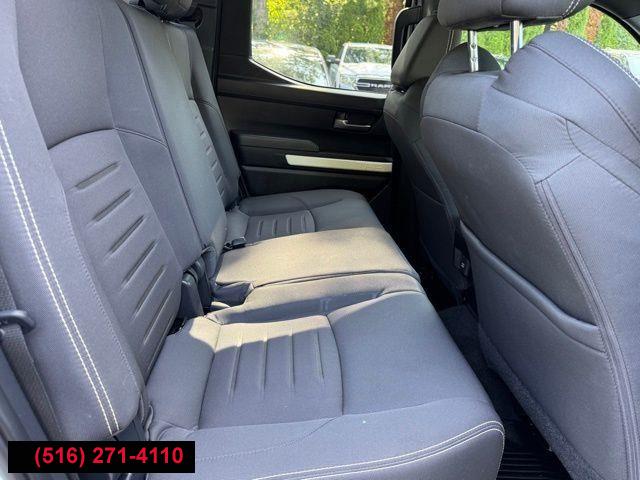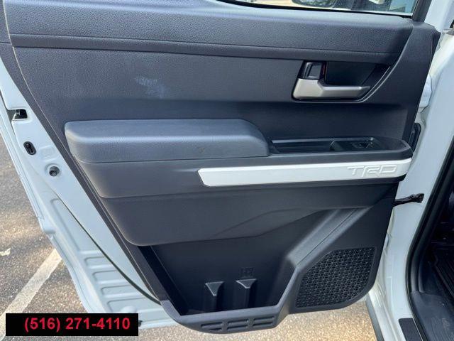 Navigation system: Drive Connect (1 year trial) includes Cloud Navigation with real time traffic and Google POI, 9 Speakers, AM/FM radio: SiriusXM, JBL Premium Audio, Radio: 14" Toyota Audio Multimedia, Air Conditioning, Automatic temperature control, Front dual zone A/C, Rear window defroster, Heads-Up Display, Power driver seat, Power steering, Power windows, Remote keyless entry, Steering wheel mounted audio controls, Four wheel independent suspension, Speed-sensing steering, Traction control, 4-Wheel Disc Brakes, ABS brakes, Anti-whiplash front head restraints, Dual front impact airbags, Dual front side impact airbags, Emergency communication system: Safety Connect (1-year trial), Front anti-roll bar, Knee airbag, Low tire pressure warning, Occupant sensing airbag, Overhead airbag, Rear anti-roll bar, Power moonroof, Brake assist, Electronic Stability Control, Exterior Parking Camera Rear, Auto High-beam Headlights, Front fog lights, Fully automatic headlights, Panic alarm, Security system, Speed control, Bumpers: body-color, Heated door mirrors, Power door mirrors, Rear step bumper, Turn signal indicator mirrors, Apple CarPlay/Android Auto, Auto-dimming Rear-View mirror, Driver door bin, Driver vanity mirror, Front reading lights, Garage door transmitter: HomeLink, Heated steering wheel, Htd & Vent TRD Pro IsoDynamic Performance Seats, Illuminated entry, Leather Shift Knob, Leather steering wheel, Outside temperature display, Overhead console, Passenger vanity mirror, Tachometer, Telescoping steering wheel, Tilt steering wheel, Trip computer, Front Bucket Seats, Front Center Armrest, Heated front seats, Power passenger seat, SofTex Seat Trim, Split folding rear seat, Ventilated front seats, Passenger door bin, Alloy wheels, Wheels: 18" Black TRD Pro Alloy, Variably intermittent wipers, 3.583 Axle Ratio
