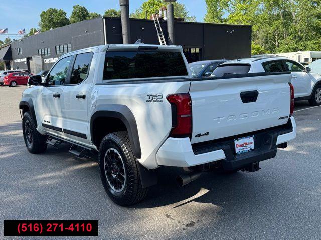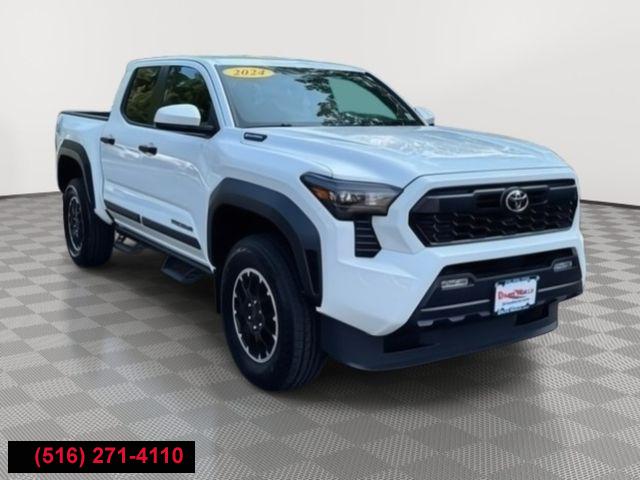 All pricing and details are believed to be accurate, but we do not warrant or guarantee such accuracy. The prices shown above may vary from region to region, as will incentives, and are subject to change. All cars are sold cosmetically As-Is. Vehicle information is based on standard equipment and may vary from vehicle to vehicle. Call or email for complete vehicle specific information. Price Does not include tax, title, license, destination charges, finance charges, or any reconditioning fees. Our special Internet pricing cannot be extended without a printed copy of the online pricing. The in-store price may exceed our special online pricing. Sorry but we cannot extend special pricing without a printed copy of the on-line pricing. To take advantage of our special Internet discounts, please print this page and present it to your salesperson at the BEGINNING of the transaction. Special Internet pricing posted on this ad/coupon/promotion is only available to customers who reference such pricing & present the ad at time of sale otherwise our store standard list price applies. Please be advised this ad is a Special Internet only ad. Prices can be modified and adjusted weekly, daily and sometimes hourly due to inquiries, bidding and website traffic on any Vehicles. All displayed inventory is subject to prior sale and all prices expire at midnight on the date displayed. Every reasonable effort has been made to ensure the accuracy of the information contained on this site, however absolute accuracy cannot be guaranteed. Advertised special excludes state tax, title, license, registration, NY state inspection, NYS tire recycling fee, finance charges, and dealer fees if applicable. Please verify any information in question with the dealership sales manager. This is easily done by calling us at (516) 271-4110 or by visiting us at the dealership. **With approved credit. White 2024 Toyota Tacoma Hybrid TRD Pro 4WD 8-Speed Automatic 2.4L I4 PDI Hybrid Turbocharged DOHC 16V 2.4L I4 PDI Hybrid Turbocharged DOHC 16V.