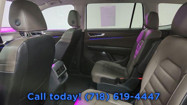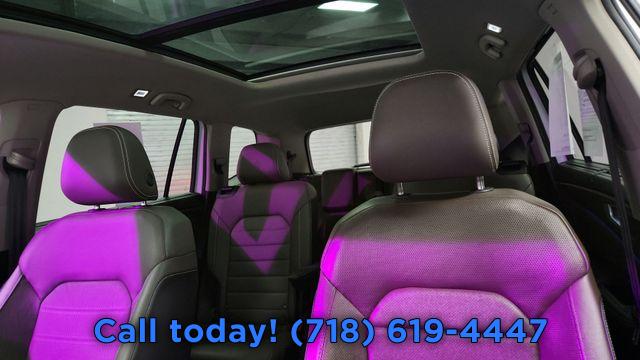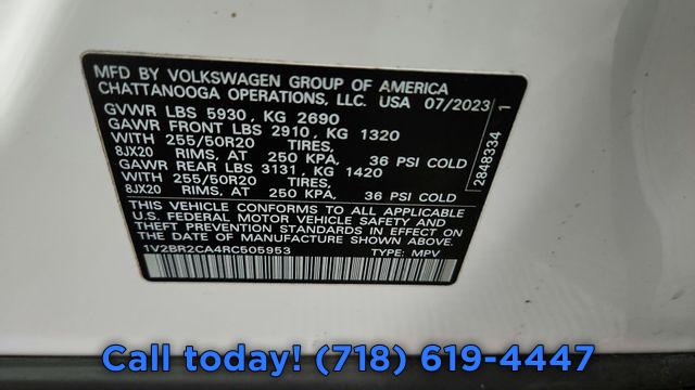 Navigation System, 6 Speakers, AM/FM radio: SiriusXM with 360L, Radio data system, Radio: MIB3 Discover Media w/Navigation, Air Conditioning, Automatic temperature control, Front dual zone A/C, Rear air conditioning, Rear window defroster, Heads-Up Display, Memory seat, Power driver seat, Power steering, Power windows, Remote keyless entry, Steering wheel mounted audio controls, Four wheel independent suspension, Speed-sensing steering, Standard Suspension, Traction control, 4-Wheel Disc Brakes, ABS brakes, Dual front impact airbags, Dual front side impact airbags, Emergency communication system: VW Car-Net Safe & Secure 5-year, Front anti-roll bar, Low tire pressure warning, Occupant sensing airbag, Overhead airbag, Rear anti-roll bar, Power moonroof: Panoramic, Power Liftgate, Brake assist, Electronic Stability Control, Exterior Parking Camera Rear, Auto High-beam Headlights, Delay-off headlights, Front fog lights, Fully automatic headlights, Panic alarm, Security system, Speed control, Bumpers: body-color, Heated door mirrors, Power door mirrors, Spoiler, Turn signal indicator mirrors, Auto-Dimming Rear-View Mirror, Auto-dimming Rear-View mirror, Compass, Driver door bin, Driver vanity mirror, Front reading lights, Heated steering wheel, Heated/Actively Ventilated Front Bucket Seats, Illuminated entry, Outside temperature display, Overhead console, Passenger vanity mirror, Rear reading lights, Rear seat center armrest, Tachometer, Telescoping steering wheel, Tilt steering wheel, Trip computer, VW Care, 2nd-Row Dual Captain's Chairs, 3rd row seats: split-bench, Front Bucket Seats, Front Center Armrest, Heated front seats, Heated rear seats, Perforated Vienna Leather Seating Surfaces, Power passenger seat, Split folding rear seat, Ventilated front seats, Passenger door bin, Alloy wheels, Wheels: 20" 2-Tone Machined Alloy, Rain sensing wipers, Rear window wiper, Variably intermittent wipers, 3.60 Axle Ratio