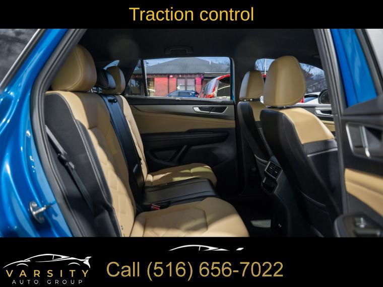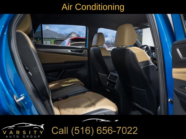 6 Speakers, AM/FM radio: SiriusXM with 360L, Radio data system, Radio: MIB3 Composition Media AM/FM/HD, Air Conditioning, Automatic temperature control, Front dual zone A/C, Rear window defroster, Power driver seat, Power steering, Power windows, Remote keyless entry, Steering wheel mounted audio controls, 4-Wheel Independent Suspension, Four wheel independent suspension, Speed-sensing steering, Traction control, 4-Wheel Disc Brakes, ABS brakes, Dual front impact airbags, Dual front side impact airbags, Emergency communication system: VW Car-Net Safe & Secure 5-year, Front anti-roll bar, Low tire pressure warning, Occupant sensing airbag, Overhead airbag, Rear anti-roll bar, Power Liftgate, Brake assist, Electronic Stability Control, Exterior Parking Camera Rear, Delay-off headlights, Front fog lights, Fully automatic headlights, Panic alarm, Security system, Speed control, Bumpers: body-color, Heated door mirrors, Power door mirrors, Spoiler, Turn signal indicator mirrors, Wheel Splash Guards (Set of 4), Auto-dimming Rear-View mirror, Compass, Driver door bin, Driver vanity mirror, Front & Rear Park Distance Control, Front Footwell Lights, Front reading lights, Heated & Actively Ventilated Front Seats, Heated steering wheel, Illuminated entry, Outside temperature display, Overhead console, Passenger vanity mirror, Rear reading lights, Rear seat center armrest, Tachometer, Telescoping steering wheel, Tilt steering wheel, Trip computer, Front Bucket Seats, Front Center Armrest, Heated front seats, Perforated V-Tex Leatherette Seating Surfaces, Split folding rear seat, Ventilated front seats, Passenger door bin, Alloy wheels, Wheels: 20" 5-Spoke 2-Tone Machined Alloy, Rain sensing wipers, Rear window wiper, Variably intermittent wipers, 3.60 Axle Ratio, The Price you See, is the Price You Pay!!!, Volkswagen Atlas Cross Sport 2.0T SE w/Technology, Kingfisher Blue Metallic, AWD, One Owner, Clean CARFAX