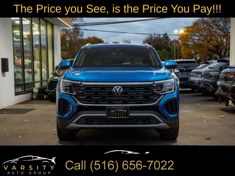 The Price you See, is the Price You Pay!!!, Volkswagen Atlas Cross Sport 2.0T SE w/Technology, Kingfisher Blue Metallic, AWD, One Owner, Clean CARFAX, 3.60 Axle Ratio, 4-Wheel Disc Brakes, 4-Wheel Independent Suspension, 6 Speakers, ABS brakes, Air Conditioning, Alloy wheels, AM/FM radio: SiriusXM with 360L, Auto-dimming Rear-View mirror, Automatic temperature control, Brake assist, Bumpers: body-color, Compass, Delay-off headlights, Driver door bin, Driver vanity mirror, Dual front impact airbags, Dual front side impact airbags, Electronic Stability Control, Emergency communication system: VW Car-Net Safe & Secure 5-year, Exterior Parking Camera Rear, Four wheel independent suspension, Front & Rear Park Distance Control, Front anti-roll bar, Front Bucket Seats, Front Center Armrest, Front dual zone A/C, Front fog lights, Front Footwell Lights, Front reading lights, Fully automatic headlights, Heated & Actively Ventilated Front Seats, Heated door mirrors, Heated front seats, Heated steering wheel, Illuminated entry, Low tire pressure warning, Occupant sensing airbag, Outside temperature display, Overhead airbag, Overhead console, Panic alarm, Passenger door bin, Passenger vanity mirror, Perforated V-Tex Leatherette Seating Surfaces, Power door mirrors, Power driver seat, Power Liftgate, Power steering, Power windows, Radio data system, Radio: MIB3 Composition Media AM/FM/HD, Rain sensing wipers, Rear anti-roll bar, Rear reading lights, Rear seat center armrest, Rear window defroster, Rear window wiper, Remote keyless entry, Security system, Speed control, Speed-sensing steering, Split folding rear seat, Spoiler, Steering wheel mounted audio controls, Tachometer, Telescoping steering wheel, Tilt steering wheel, Traction control, Trip computer, Turn signal indicator mirrors, Variably intermittent wipers, Ventilated front seats, Wheel Splash Guards (Set of 4), Wheels: 20" 5-Spoke 2-Tone Machined Alloy. Kingfisher Blue Metallic 2024 Volkswagen Atlas Cross Sport 2.0T SE w/Technology AWD 8-Speed Automatic with Tiptronic 2.0L TSI Odometer is 930 miles below market average! 19/26 City/Highway MPG