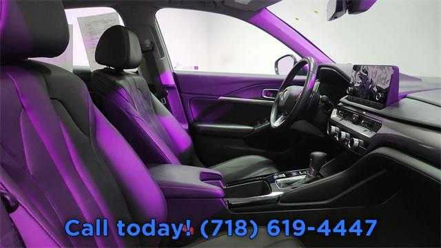 8 Speakers, AM/FM radio, Radio data system, Radio: Acura Premium Audio System, Air Conditioning, Automatic temperature control, Front dual zone A/C, Rear window defroster, Power driver seat, Power steering, Power windows, Remote keyless entry, Steering wheel mounted audio controls, Four wheel independent suspension, Speed-sensing steering, Traction control, 4-Wheel Disc Brakes, ABS brakes, Dual front impact airbags, Dual front side impact airbags, Front anti-roll bar, Knee airbag, Low tire pressure warning, Occupant sensing airbag, Overhead airbag, Rear anti-roll bar, Rear side impact airbag, Power moonroof, Brake assist, Electronic Stability Control, Lane departure: Lane Keeping Assist System (LKAS) active, Auto High-beam Headlights, Delay-off headlights, Fully automatic headlights, Panic alarm, Security system, Speed control, Bumpers: body-color, Heated door mirrors, Power door mirrors, Apple CarPlay/Android Auto, Auto-dimming Rear-View mirror, Compass, Driver door bin, Driver vanity mirror, Front reading lights, Illuminated entry, Leather Shift Knob, Leather steering wheel, Outside temperature display, Overhead console, Passenger vanity mirror, Rear seat center armrest, Tachometer, Telescoping steering wheel, Tilt steering wheel, Trip computer, Front Bucket Seats, Front Center Armrest, Heated Front Bucket Seats, Heated front seats, Leatherette-Trimmed Seating Surfaces, Split folding rear seat, Passenger door bin, 17" Aluminum Alloy Wheels, Alloy wheels, Speed-Sensitive Wipers, Variably intermittent wipers