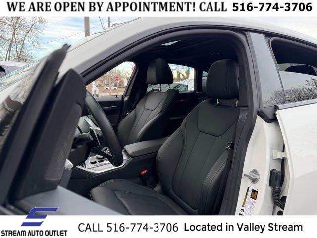 Wheels: 18" x 8.5" Dual-Spoke Bicolor, Sport Seats, Perforated Sensatec Upholstery, Radio: AM/FM Audio System, Fineline Light Open-Pore Fine Wood Trim, Power Front Seats, Lumbar Support, Heated Front Seats, SiriusXM Satellite Radio w/1-Year Subscription, Hi-Fi Sound System, BMW Assist eCall, BMW TeleServices, ConnectedDrive Services, Connected Package Pro, Wireless Device Charging, Personal eSIM 5G, Navigation, Widescreen Display, Apple CarPlay & Android Auto Compatibility, 4-Wheel Disc Brakes, Emergency communication system: BMW Assist eCall, Auto High-beam Headlights, Exterior Parking Camera Rear, AM/FM radio: SiriusXM, Compass, Speed-Sensitive Wipers, 10 Speakers, Auto-dimming Rear-View mirror, Variably intermittent wipers, Turn signal indicator mirrors, Trip computer, Traction control, Tilt steering wheel, Telescoping steering wheel, Steering wheel mounted audio controls, Sport steering wheel, Split folding rear seat, Speed-sensing steering, Speed control, Security system, Remote keyless entry, Rear window defroster, Rear seat center armrest, Rear reading lights, Rear anti-roll bar, Rain sensing wipers, Radio data system, Power windows, Power steering, Power passenger seat, Power moonroof, Power driver seat, Power door mirrors, Passenger vanity mirror, Passenger door bin, Panic alarm, Overhead console, Overhead airbag, Outside temperature display, Occupant sensing airbag, Memory seat, Low tire pressure warning, Leather steering wheel, Knee airbag, Illuminated entry, Heated front seats, Heated door mirrors, HVAC memory, Genuine wood dashboard insert, Genuine wood console insert, Garage door transmitter, Fully automatic headlights, Front reading lights, Front dual zone A/C, Front anti-roll bar, Four wheel independent suspension, Dual front side impact airbags, Dual front impact airbags, Driver vanity mirror, Driver door bin, Delay-off headlights, Bumpers: body-color, Brake assist, Automatic temperature control, Auto-dimming door mirrors, Audio memory, Alloy wheels, ABS brakes, Tachometer, Power Liftgate, Navigation System, Front Center Armrest, Front Bucket Seats, Electronic Stability Control, Air Conditioning