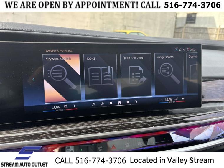 Navigation system: BMW Maps Navigation, Connected Package Pro, M Sport Package Pro, M Sport Professional Package, Premium Package, 18 Speakers, AM/FM radio: SiriusXM, Bowers & Wilkins Surround Sound, Enhanced USB and Bluetooth, Radio data system, Radio: Audio System, Rear audio controls, SiriusXM Satellite Radio with 1 Year Subscription, Weather band radio, Air Conditioning, Automatic temperature control, Front dual zone A/C, Rear air conditioning, Rear dual zone A/C, Rear window defroster, Head restraints memory, Heads-Up Display, Memory seat, Power driver seat, Power steering, Power windows, Remote keyless entry, Steering wheel memory, Steering wheel mounted audio controls, Adaptive suspension, Auto-leveling suspension, Four wheel independent suspension, Speed-sensing steering, Traction control, 4-Wheel Disc Brakes, ABS brakes, Anti-whiplash front head restraints, Dual front impact airbags, Dual front side impact airbags, Emergency communication system: BMW Assist eCall, Front anti-roll bar, Low tire pressure warning, M Sport Brakes with Black Calipers, Occupant sensing airbag, Overhead airbag, Power adjustable front head restraints, Rear anti-roll bar, Brake assist, Electronic Stability Control, Exterior Parking Camera Rear, Auto High-beam Headlights, Delay-off headlights, Fully automatic headlights, Panic alarm, Security system, ACC Stop and Go + Active Driving Assistant, Speed control, Auto-dimming door mirrors, Bumpers: body-color, Extended Shadowline Trim, Heated door mirrors, Illuminated Kidney Grille, Power door mirrors, Rear Spoiler, Apple CarPlay and Android Auto Compatibility, Auto tilt-away steering wheel, Auto-dimming Rear-View mirror, ConnectedDrive Services, Driver door bin, Driver vanity mirror, Front reading lights, Garage door transmitter, Heated steering wheel, Illuminated entry, Leather steering wheel, Live Cockpit Pro with Navigation, M Sport Pro Contents, Multi-Functional Seats, Natural Interaction, Outside temperature display, Overhead console, Parking Assistant Delete, Parking Assistant Professional, Passenger vanity mirror, Personal ESIM 5G, Rear reading lights, Rear seat center armrest, Sport steering wheel, Surround View with 3D View, Tachometer, Telescoping steering wheel, Tilt steering wheel, Trip computer, Front and Rear Heated Seats, Front Bucket Seats, Front Center Armrest, Heated front seats, Heated rear seats, Power passenger seat, Veganza Upholstery, Passenger door bin, Alloy wheels, Wheels: 20" M Aero Bicolor Style 907M, Rear Window Blind, Rain sensing wipers, Speed-Sensitive Wipers, Variably intermittent wipers, Uber, Lyft, and TLC driver friendly., * NYS INSPECTION INCLUDED *, * FULL INTERIOR / EXTERIOR DETAIL *, * BACK UP CAMERA *, * NAVIGATION SYSTEM *, * BLUETOOTH *, * SUNROOF / MOONROOF*, * LIMITED NYS LEMON LAW WARRANTY INCLUDED *, *FRESH OIL CHANGE *, * 150 MULTI POINT INSPECTION *, APPLE CAR PLAY/ANDROID AUTO, Premium comfort and reliability for Uber Black or Lyft Black driving.