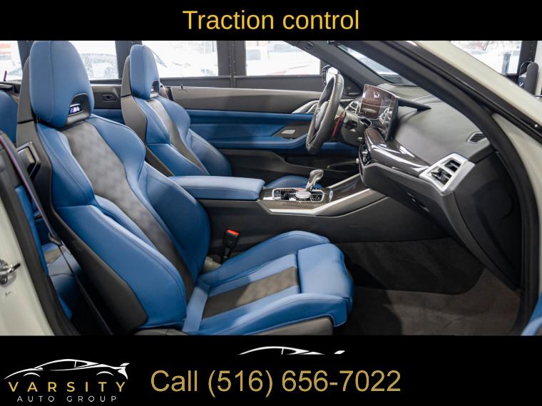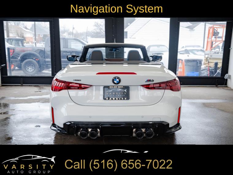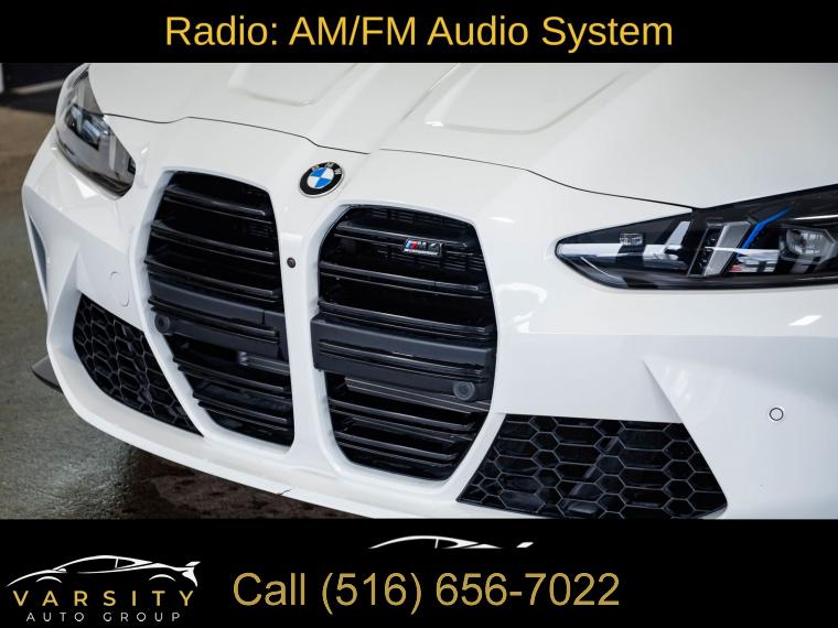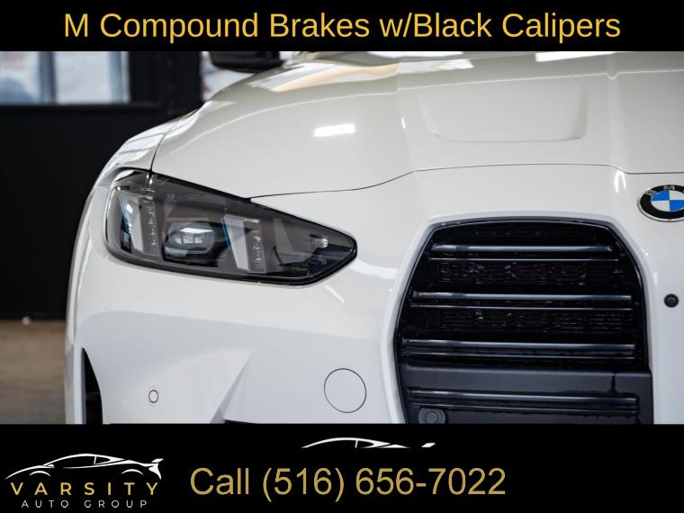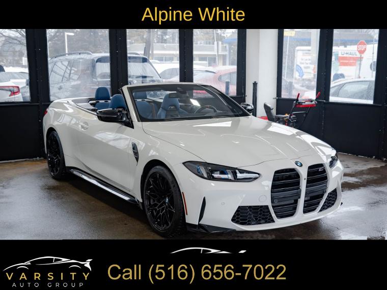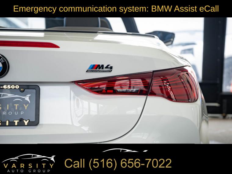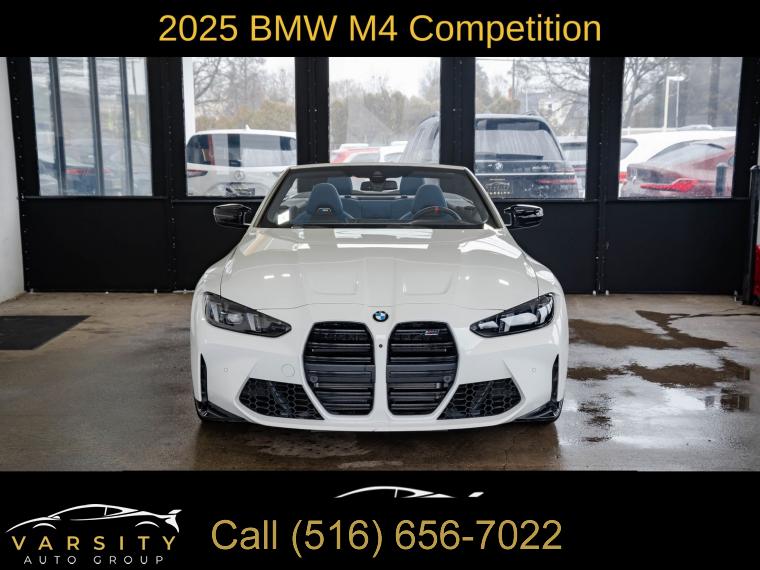 • 2025 BMW M4 Competition, Alpine White, 16 Speakers, 4-Wheel Disc Brakes, ABS brakes, Adaptive suspension, Air Conditioning, Alloy wheels, AM/FM radio: SiriusXM with 360L, Apple CarPlay & Android Auto Compatibility, Audio memory, Auto High-beam Headlights, Auto-dimming door mirrors, Auto-dimming Rear-View mirror, Automatic temperature control, BMW Assist eCall, BMW Curved Display w/HUD, BMW TeleServices, Brake assist, Bumpers: body-color, Carbon Fiber Trim, Compass, Connected Package Pro, ConnectedDrive Services, Convertible roof lining, Convertible roof wind blocker, Delay-off headlights, Driver door bin, Driver vanity mirror, Dual front impact airbags, Dual front side impact airbags, Electronic Stability Control, Emergency communication system: BMW Assist eCall, Executive Package, Extended Merino Leather Upholstery, Exterior Parking Camera Rear, Four wheel independent suspension, Front anti-roll bar, Front Bucket Seats, Front Center Armrest, Front dual zone A/C, Front reading lights, Front Ventilated Seats, Fully automatic headlights, Galvanic Controls, Garage door transmitter, Glass rear window, harman/kardon Surround Sound System, harman/kardonĀ® Speakers, Heated door mirrors, Heated Front Seats, Heated front seats, Heated Steering Wheel, HVAC memory, Illuminated entry, Integrated roll-over protection, Knee airbag, Leather Shift Knob, Leather steering wheel, Low tire pressure warning, Lumbar Support, M Compound Brakes w/Black Calipers, M Drive Professional, M Shadowline Lights, M Sport Seats, Memory seat, Navigation, Navigation System, Occupant sensing airbag, Outside temperature display, Overhead console, Panic alarm, Parking Assistance Package, Parking Assistant Plus, Passenger door bin, Passenger vanity mirror, Personal eSIM 5G, Power convertible roof, Power door mirrors, Power driver seat, Power Front Seats, Power passenger seat, Power steering, Power windows, Radio data system, Radio: AM/FM Audio System, Rain sensing wipers, Rear anti-roll bar, Rear reading lights, Rear seat center armrest, Rear window defroster, Remote Engine Start, Remote keyless entry, Security system, SiriusXM w/360L, Speed control, Speed-sensing steering, Speed-Sensitive Wipers, Split folding rear seat, Sport steering wheel, Steering wheel mounted audio controls, Tachometer, Telescoping steering wheel, Tilt steering wheel, Traction control, Trip computer, Turn signal indicator mirrors, Variably intermittent wipers, Wheels: 19" x 9.5" Fr/20" x 10.5" Rr (Style 826M), Widescreen Display. Alpine White 2025 BMW M4 Competition AWD 8-Speed Automatic Sport 3.0L I6 Turbocharged DOHC 24V LEV3-ULEV70 523hp Odometer is 7557 miles below market average!