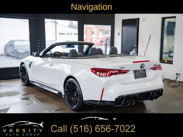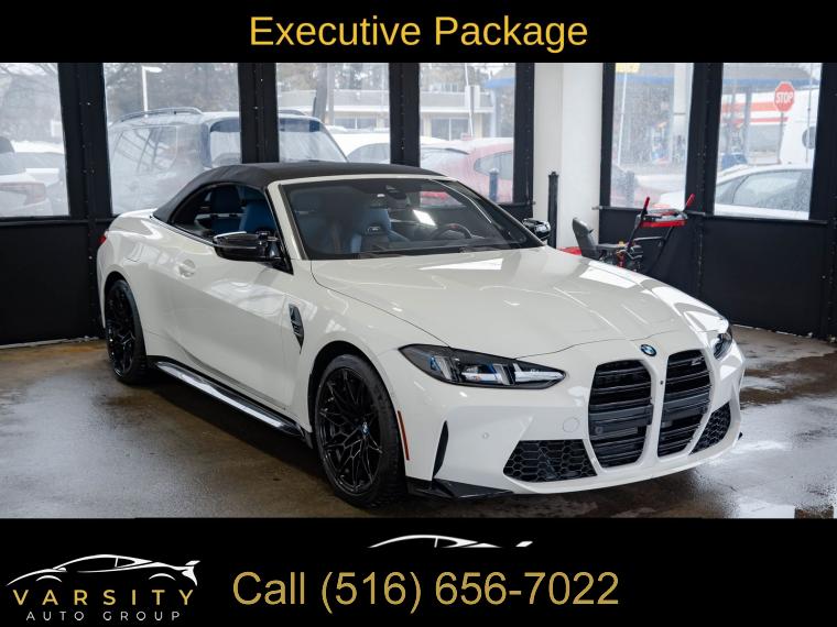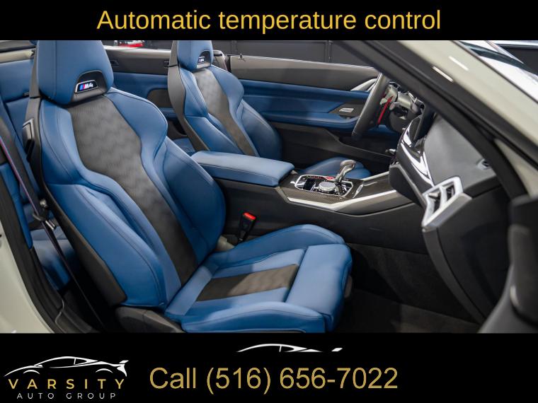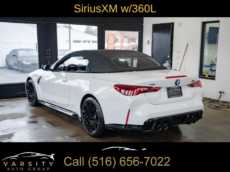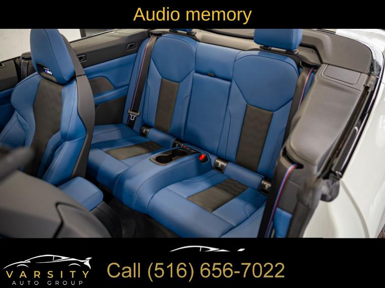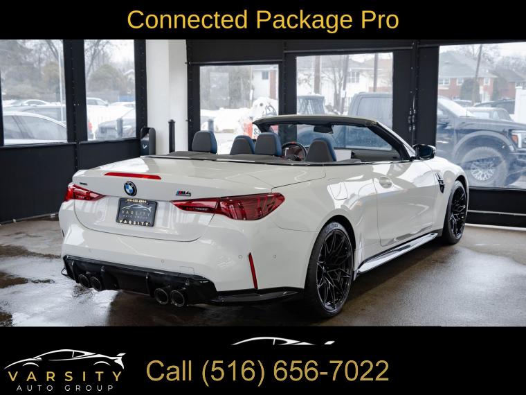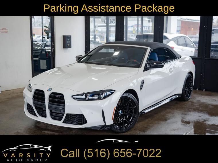 • 2025 BMW M4 Competition, Alpine White, 16 Speakers, 4-Wheel Disc Brakes, ABS brakes, Adaptive suspension, Air Conditioning, Alloy wheels, AM/FM radio: SiriusXM with 360L, Apple CarPlay & Android Auto Compatibility, Audio memory, Auto High-beam Headlights, Auto-dimming door mirrors, Auto-dimming Rear-View mirror, Automatic temperature control, BMW Assist eCall, BMW Curved Display w/HUD, BMW TeleServices, Brake assist, Bumpers: body-color, Carbon Fiber Trim, Compass, Connected Package Pro, ConnectedDrive Services, Convertible roof lining, Convertible roof wind blocker, Delay-off headlights, Driver door bin, Driver vanity mirror, Dual front impact airbags, Dual front side impact airbags, Electronic Stability Control, Emergency communication system: BMW Assist eCall, Executive Package, Extended Merino Leather Upholstery, Exterior Parking Camera Rear, Four wheel independent suspension, Front anti-roll bar, Front Bucket Seats, Front Center Armrest, Front dual zone A/C, Front reading lights, Front Ventilated Seats, Fully automatic headlights, Galvanic Controls, Garage door transmitter, Glass rear window, harman/kardon Surround Sound System, harman/kardonĀ® Speakers, Heated door mirrors, Heated Front Seats, Heated front seats, Heated Steering Wheel, HVAC memory, Illuminated entry, Integrated roll-over protection, Knee airbag, Leather Shift Knob, Leather steering wheel, Low tire pressure warning, Lumbar Support, M Compound Brakes w/Black Calipers, M Drive Professional, M Shadowline Lights, M Sport Seats, Memory seat, Navigation, Navigation System, Occupant sensing airbag, Outside temperature display, Overhead console, Panic alarm, Parking Assistance Package, Parking Assistant Plus, Passenger door bin, Passenger vanity mirror, Personal eSIM 5G, Power convertible roof, Power door mirrors, Power driver seat, Power Front Seats, Power passenger seat, Power steering, Power windows, Radio data system, Radio: AM/FM Audio System, Rain sensing wipers, Rear anti-roll bar, Rear reading lights, Rear seat center armrest, Rear window defroster, Remote Engine Start, Remote keyless entry, Security system, SiriusXM w/360L, Speed control, Speed-sensing steering, Speed-Sensitive Wipers, Split folding rear seat, Sport steering wheel, Steering wheel mounted audio controls, Tachometer, Telescoping steering wheel, Tilt steering wheel, Traction control, Trip computer, Turn signal indicator mirrors, Variably intermittent wipers, Wheels: 19" x 9.5" Fr/20" x 10.5" Rr (Style 826M), Widescreen Display. Alpine White 2025 BMW M4 Competition AWD 8-Speed Automatic Sport 3.0L I6 Turbocharged DOHC 24V LEV3-ULEV70 523hp Odometer is 7557 miles below market average!