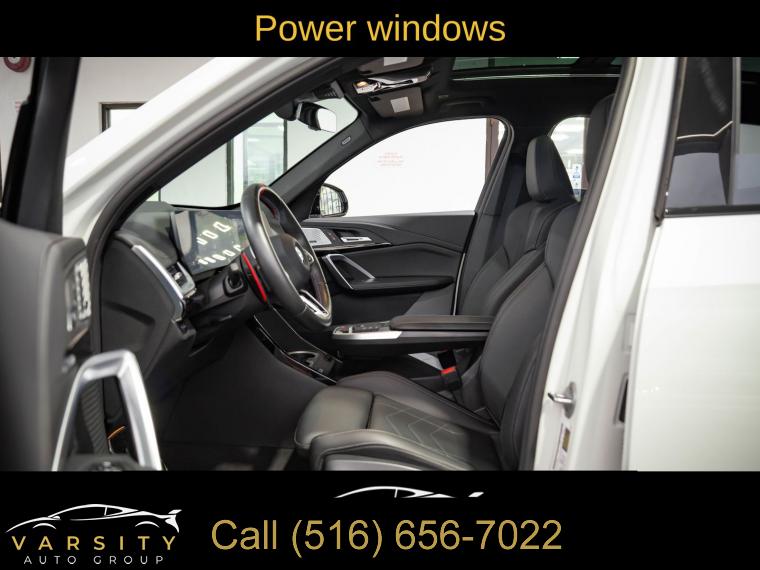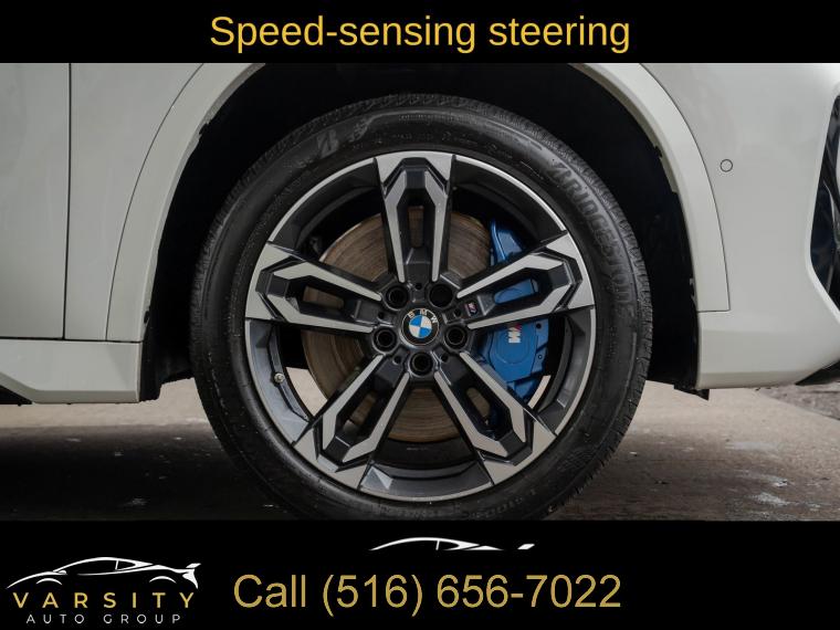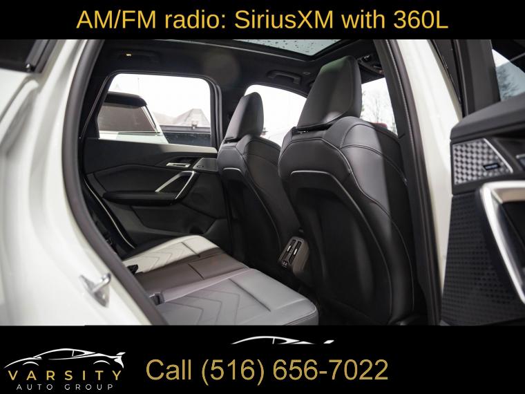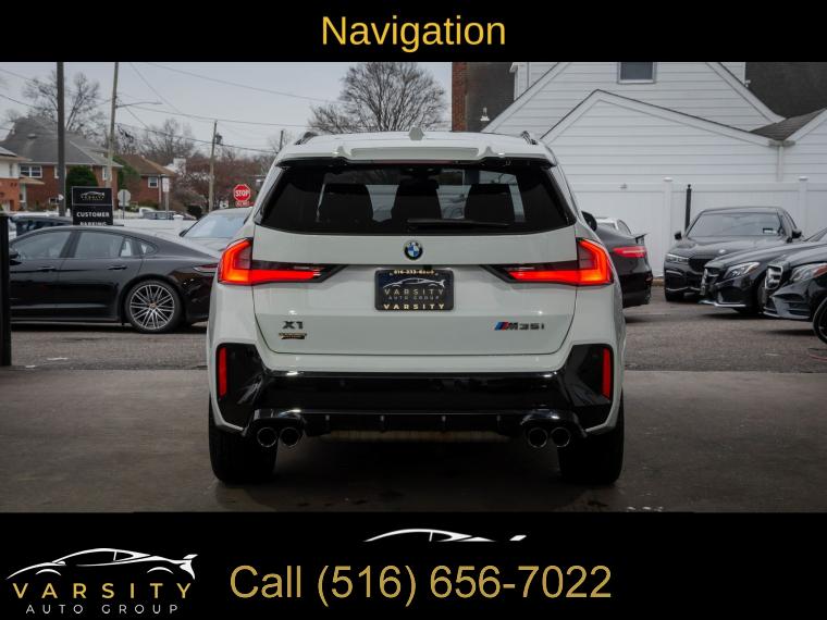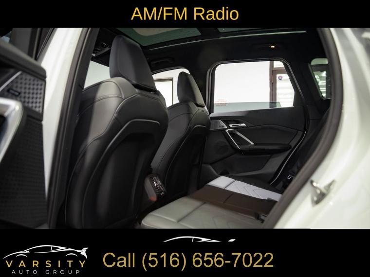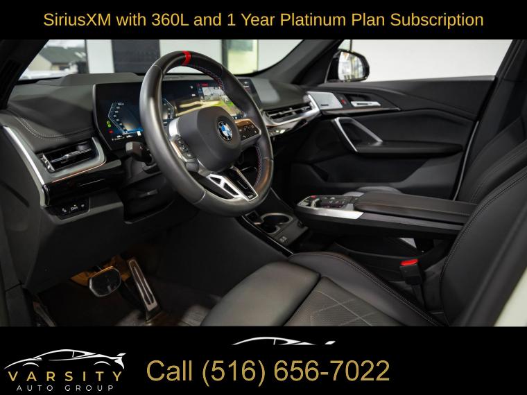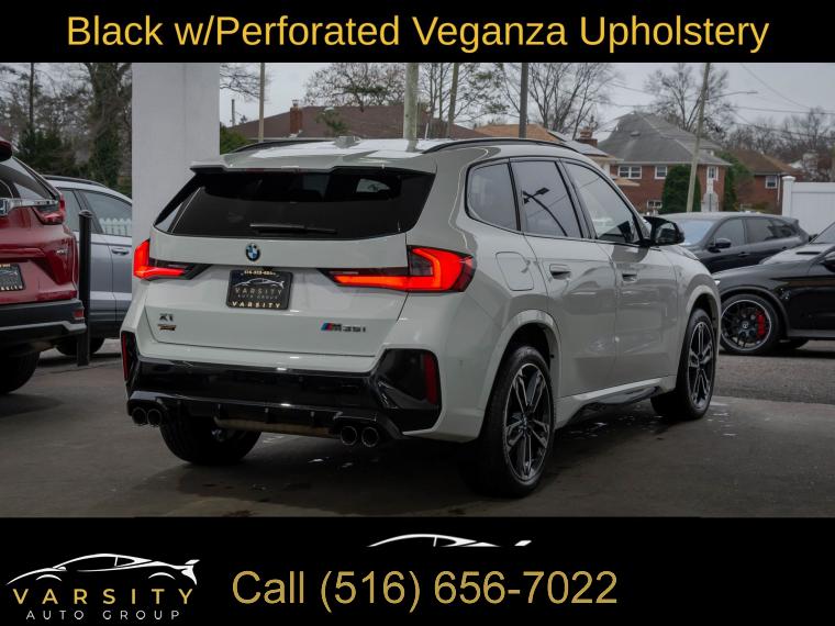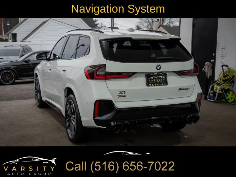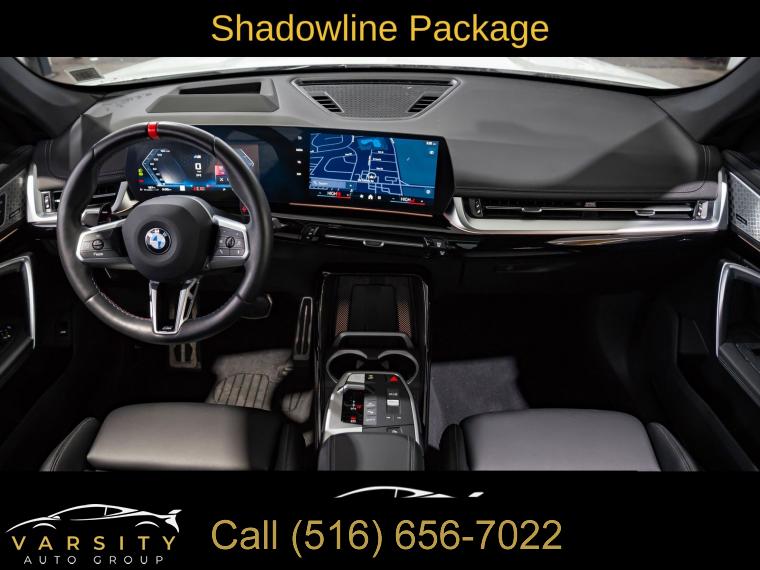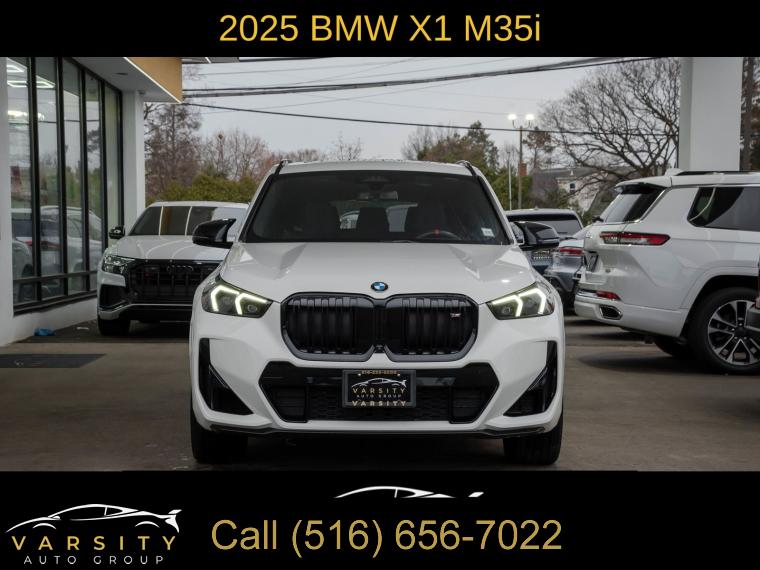 Navigation, Navigation System, Premium Package, Shadowline Package, 12 Speakers, AM/FM Radio, AM/FM radio: SiriusXM with 360L, Harman/Kardon Premium Sound System, harman/kardonĀ® Speakers, Radio data system, SiriusXM with 360L and 1 Year Platinum Plan Subscription, Air Conditioning, Automatic temperature control, Front dual zone A/C, Rear window defroster, Head-Up Display, Memory seat, Power driver seat, Power steering, Power windows, Remote Engine Start, Remote keyless entry, Steering wheel mounted audio controls, Adaptive suspension, Four wheel independent suspension, Speed-sensing steering, Traction control, 4-Wheel Disc Brakes, ABS brakes, Dual front impact airbags, Dual front side impact airbags, Emergency communication system: BMW Assist eCall, Front anti-roll bar, Knee airbag, Low tire pressure warning, Occupant sensing airbag, Overhead airbag, Rear anti-roll bar, Panoramic Moonroof, Power Liftgate, Brake assist, Electronic Stability Control, Exterior Parking Camera Rear, Auto High-beam Headlights, Delay-off headlights, Anti-Theft Recorder, Panic alarm, Security system, Speed control, Auto-dimming door mirrors, Bumpers: body-color, Extended Shadowline Trim, Heated door mirrors, M Shadowline Lights, Power door mirrors, Spoiler, Turn signal indicator mirrors, Apple CarPlay and Android Auto Compatibility, Apple CarPlay Compatibility, Auto-dimming Rear-View mirror, BMW Assist ECall, BMW TeleServices, Compass, Driver door bin, Driver vanity mirror, Front reading lights, Heated Steering Wheel, Illuminated entry, Interior Camera, Leather steering wheel, Live Cockpit Pro, Outside temperature display, Overhead console, Parking Assistant Plus, Passenger vanity mirror, Personal ESIM 5G, Premium Content 1, Rear reading lights, Rear seat center armrest, Sport steering wheel, Surround View with 3D View, Tachometer, Telescoping steering wheel, Tilt steering wheel, Trip computer, Universal Garage-Door Opener, Widescreen Display, Wireless Device Charging, Front Bucket Seats, Heated Front Seats, Heated front seats, Perforated Veganza Upholstery, Power Front Seats, Power passenger seat, Split folding rear seat, Sport Seats, Front Center Armrest w/Storage, Passenger door bin, Alloy wheels, Wheels: 19" x 8.0" M Dual-Spoke Bi-Color, Rain sensing wipers, Rear window wiper, Speed-Sensitive Wipers, Variably intermittent wipers, 2025 BMW X1 M35i, Alpine White, Black w/Perforated Veganza Upholstery