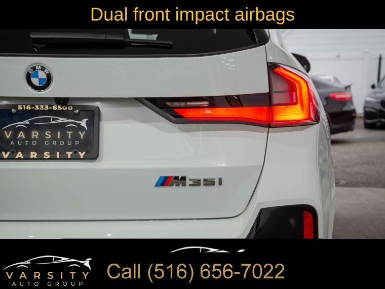 2025 BMW X1 M35i, Alpine White, Black w/Perforated Veganza Upholstery, 12 Speakers, 4-Wheel Disc Brakes, ABS brakes, Adaptive suspension, Air Conditioning, Alloy wheels, AM/FM Radio, AM/FM radio: SiriusXM with 360L, Anti-Theft Recorder, Apple CarPlay and Android Auto Compatibility, Apple CarPlay Compatibility, Auto High-beam Headlights, Auto-dimming door mirrors, Auto-dimming Rear-View mirror, Automatic temperature control, BMW Assist ECall, BMW TeleServices, Brake assist, Bumpers: body-color, Compass, Delay-off headlights, Driver door bin, Driver vanity mirror, Dual front impact airbags, Dual front side impact airbags, Electronic Stability Control, Emergency communication system: BMW Assist eCall, Extended Shadowline Trim, Exterior Parking Camera Rear, Four wheel independent suspension, Front anti-roll bar, Front Bucket Seats, Front Center Armrest w/Storage, Front dual zone A/C, Front reading lights, Harman/Kardon Premium Sound System, harman/kardonĀ® Speakers, Head-Up Display, Heated door mirrors, Heated Front Seats, Heated front seats, Heated Steering Wheel, Illuminated entry, Interior Camera, Knee airbag, Leather steering wheel, Live Cockpit Pro, Low tire pressure warning, M Shadowline Lights, Memory seat, Navigation, Navigation System, Occupant sensing airbag, Outside temperature display, Overhead airbag, Overhead console, Panic alarm, Panoramic Moonroof, Parking Assistant Plus, Passenger door bin, Passenger vanity mirror, Perforated Veganza Upholstery, Personal ESIM 5G, Power door mirrors, Power driver seat, Power Front Seats, Power Liftgate, Power passenger seat, Power steering, Power windows, Premium Content 1, Premium Package, Radio data system, Rain sensing wipers, Rear anti-roll bar, Rear reading lights, Rear seat center armrest, Rear window defroster, Rear window wiper, Remote Engine Start, Remote keyless entry, Security system, Shadowline Package, SiriusXM with 360L and 1 Year Platinum Plan Subscription, Speed control, Speed-sensing steering, Speed-Sensitive Wipers, Split folding rear seat, Spoiler, Sport Seats, Sport steering wheel, Steering wheel mounted audio controls, Surround View with 3D View, Tachometer, Telescoping steering wheel, Tilt steering wheel, Traction control, Trip computer, Turn signal indicator mirrors, Universal Garage-Door Opener, Variably intermittent wipers, Wheels: 19" x 8.0" M Dual-Spoke Bi-Color, Widescreen Display, Wireless Device Charging. Alpine White 2025 BMW X1 M35i AWD 7-Speed Automatic 2.0L I4 16V TwinPower Turbo Odometer is 2549 miles below market average! 23/31 City/Highway MPG