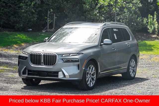ABS brakes, Adaptive suspension, Apple CarPlay & Android Auto Compatibility, Apple CarPlay Compatibility, Brake assist, Connected Package Pro, Electronic Stability Control, Exterior Parking Camera Rear, Front dual zone A/C, Head restraints memory, Heads-Up Display, Hi-Fi Sound System, Memory seat, Navigation system: BMW Maps Navigation, Power adjustable front head restraints, Power door mirrors, Power driver seat, Power Front Seats, Power moonroof, Power passenger seat, Power steering, Power windows, Radio data system, Rear dual zone A/C, Rear window defroster, Remote keyless entry, SiriusXM Satellite Radio, Steering wheel memory, Steering wheel mounted audio controls, Traction control, Turn signal indicator mirrors, Wireless Charging Device. Priced below KBB Fair Purchase Price! CARFAX One-Owner.2025 BMW X7 xDrive40i Brooklyn Gray Metallic xDrive40i AWD 8-Speed Automatic Sport 3.0L I6 DOHC 24VSpecial pricing ad/promotion is available to customers who reference such pricing and present the ad at the time of sale otherwise store list price applies. Buyer is responsible to verify options/packages. Any error voids the ad. Certified Pre-Owned program available. Same-day delivery In-stock units only. Dealer-installed accessories are extra. Dealer is not responsible for typographical errors. Every vehicle in inventory is equipped with LoJack at an additional cost. The special price expires at the midnight of the publication date. For return & exchange policy visit the website for details. All Prices will be honored as cash prices. Prices do not include the following fees: Doc Fee, tax, tags, DMV fees. Pre-installed LoJack, and Pre-Certification (vary between vehicles) Please visit or call the dealership for complete details.