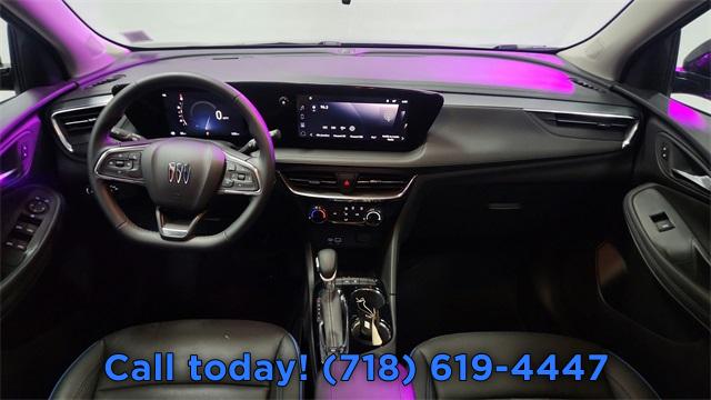 Experience Buick Package, Preferred Equipment Group 1SD, 2 USB Ports (1 Type-A, 1 Type-C), 6 Speakers, AM/FM radio: SiriusXM, Enhanced Performance 6-Speaker System, Radio data system, Radio: Audio System w/AM/FM, SiriusXM Trial Subscription, Air Conditioning, Automatic temperature control, Rear window defroster, Power steering, Power windows, Remote keyless entry, Steering wheel mounted audio controls, Ride & Handling Suspension, Speed-sensing steering, Traction control, 4-Wheel Disc Brakes, ABS brakes, Dual front impact airbags, Dual front side impact airbags, Emergency communication system: OnStar and Buick connected services capable, Front anti-roll bar, Front wheel independent suspension, Knee airbag, Low tire pressure warning, Occupant sensing airbag, Overhead airbag, Rear side impact airbag, Power Panoramic Tilt-Sliding Moonroof, Brake assist, Electronic Stability Control, Auto High-beam Headlights, Delay-off headlights, Fully automatic headlights, Panic alarm, Security system, Speed control, Bumpers: body-color, Front License Plate Bracket, Heated door mirrors, Power door mirrors, Spoiler, Compass, Driver door bin, Driver vanity mirror, Front reading lights, Illuminated entry, Outside temperature display, Overhead console, Passenger vanity mirror, Rear reading lights, Sport steering wheel, Tachometer, Telescoping steering wheel, Tilt steering wheel, Trip computer, Wireless Apple CarPlay/Wireless Android Auto, 4-Way Manual Passenger Seat Adjuster, 6-Way Manual Driver Seat Adjuster, Front Bucket Seats, Front Center Armrest, Leatherette Seat Trim, Split folding rear seat, Passenger door bin, Alloy wheels, Wheels: 18" Gloss Black Aluminum, Wheels: 19" Gloss Black Aluminum, Rear window wiper, Variably intermittent wipers, 5.45 Final Drive Axle Ratio