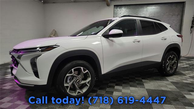 CARFAX One-Owner. Clean CARFAX. 2025 Chevrolet Trax LT 6-Speaker Audio System Feature, Adaptive Cruise Control, Auto High-beam Headlights, Automatic temperature control, Black Nameplate, Blackout Package, Driver Confidence Package, Exterior Parking Camera Rear, Front and Rear Black Bowtie Emblems, Front Doors Keyless Open, Fully automatic headlights, Heated Driver and Front Passenger Seats, Heated Power-Adjustable Outside Mirrors, Heated Steering Wheel, Lane Change Alert with Side Blind Zone Alert, License Plate Front Mounting Package, LT Convenience Package, Power Sliding Glass Sunroof with Manual Shade, Preferred Equipment Group 1LT, Radio: AM/FM Stereo Audio System, Rear Cross-Traffic Alert, Rear Park Assist, Remote keyless entry, SiriusXM Trial Subscription, Steering wheel mounted audio controls, Sunroof Package, Wireless Charging, Wrapped Steering Wheel.