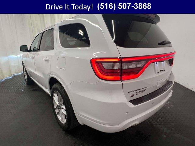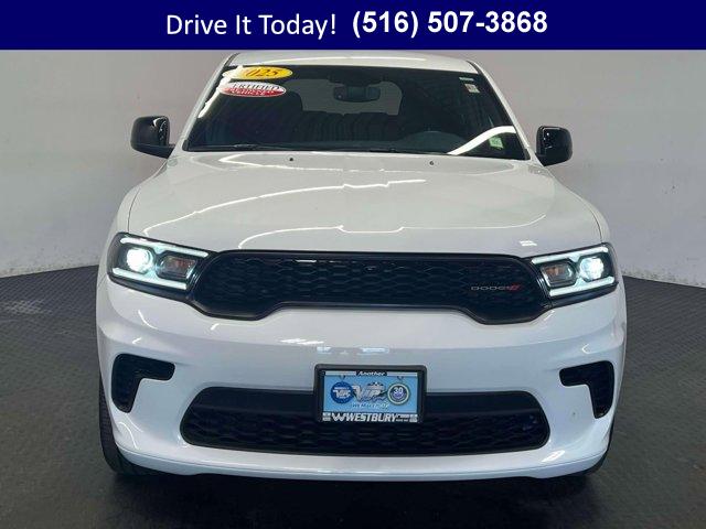 AWD confidence, low miles for its age, and everyday practicality come together in this 2025 Dodge Durango 4D Sport Utility. The White Knuckle Clearcoat exterior pairs cleanly with a Black cloth cabin accented by red stitching, setting a refined tone for family trips, weekday commutes, and weekend hauling across the Northeast. The smooth 3.6L V6 teams with an 8-speed automatic for quiet, composed driving, while the third row ensures flexible seating when you need it and fold-flat utility when you do not. With the power rear gate for easy loading, generous storage, and supportive cloth bucket seats, this Durango is built to make daily life simpler and more comfortable.This cabin is smartly connected. A 10.1 inch multimedia display with Uconnect 5 Nav brings built-in navigation, Apple CarPlay and Android Auto, and SiriusXM with 360L for a broad range of entertainment. Dodge Connect emergency communication capability adds peace of mind. Everyday touches like a heated steering wheel, heated front seats, and a leather steering wheel elevate comfort on chilly mornings. Dual-zone automatic temperature control with rear air conditioning helps everyone find their ideal climate. Steering wheel media controls keep your focus on the road, and the auto-dimming rearview mirror, compass, trip computer, and outside temperature display keep info close at hand. For safety, you get ParkView Rear Back-Up Camera, Electronic Stability Control, 4-wheel disc brakes, and multiple airbags including knee airbags. Heated exterior mirrors, speed-sensitive wipers, and a rear window defroster enhance visibility in variable weather. It is all complemented by the Quick Order Package 2BD GT, gloss black exterior mirrors, and 20 inch Fine Silver alloy wheels & more.This Durango shows 12,540 miles, which is lightly driven for its year. It has the features and flexibility families want, with mileage that reflects thoughtful use and plenty of life ahead.VIP+ ProgramEnjoy lasting value with our VIP+ Program. You receive Unlimited Oil and Filter changes for 1 year, then they are included with every factory maintenance thereafter. You also get Complimentary NYS Inspections, Complimentary Loaner Cars, and Complimentary 24/7 Rescue and Towing. These benefits are For Life and Transferable, adding confidence today and value down the road.More About UsEvery vehicle is hand selected for quality and long-term reliability, and our reconditioning is completed before sale so you can purchase with confidence. Our certified vehicles meet strict standards, including brake life no less than 50 percent, for added assurance. Count on our team for trust, preparation, and peace of mind. We are a proud member of the VIP Auto Group serving the community since 1957. We Will Satisfy You!If you are looking for an affordable used car or a used SUV in NY, this Durango fits the bill with practical space, confident AWD, and desirable comfort features built for year-round use. Commuter-friendly manners, a quiet ride, and the 8-speed automatic help reduce fatigue on longer drives, while the power rear gate, third row, and split-folding seats adapt to changing cargo needs. When the weather turns, AWD traction, heated seats, and a heated steering wheel provide winter confidence. It is an excellent long-term value for families and drivers who want safety, reliability, and flexibility for daily life on Long Island or across New York.New York shoppers are invited to call now, schedule a test drive, or learn more at WestburyJeep.com, where you can view up-to-date inventory and current pricing. This overview is intended as a general guide to features and equipment and may vary by vehicle. Please confirm exact specifications with our team.