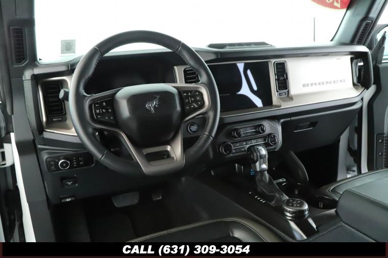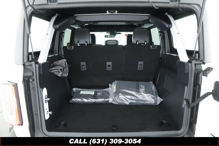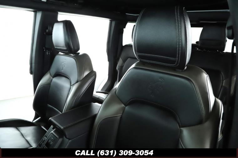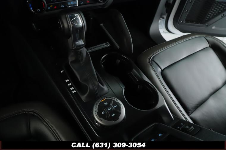 18 Bright Machined Aluminum Wheels, 360-Degree Camera, 4-Wheel Disc Brakes, 7 Speakers, ABS brakes, Adaptive Cruise Control, Air Conditioning, Alloy wheels, AM/FM radio: SiriusXM with 360L, AM/FM Stereo, Auto High-beam Headlights, Auto-dimming Rear-View mirror, Automatic temperature control, Brake Assist, Carbonized Gray Molded-In-Color Hard Top, Compass, Connected Navigation, Delay-off headlights, Door Storage Bags, Driver door bin, Driver Vanity Mirror, Dual front impact airbags, Dual front side impact airbags, Electronic Stability Control, Emergency communication system: 911 Assist, Equipment Group 314A Lux Package, Evasive Steering Assist, Exterior Parking Camera Rear, Front anti-roll bar, Front beverage holders, Front Bucket Seats, Front Center Armrest, Front dual zone A/C, Front fog lights, Front License Plate Bracket, Front Parking Sensors, Front reading lights, Front wheel independent suspension, Fully automatic headlights, Hard Top Sound Deadening Headliner, Heated door mirrors, Heated front seats, Heated Leather-Trimmed/Vinyl Bucket Seats, Heated Steering Wheel, High Clearance Fender Flares, High Clearance Suspension, Illuminated entry, Information on Demand Panel, Integrated roll-over protection, Internet access capable: FordPass Connect, Leather Shift Knob, Low tire pressure warning, Navigation system: Connected Navigation, Occupant sensing airbag, Outside temperature display, Overhead airbag, Overhead console, Panic alarm, Passenger door bin, Passenger Vanity Mirror, Position-Sensitive Bilstein Shock Absorbers, Power door mirrors, Power Driver Seat, Power Passenger Seat, Power Steering, Power Windows, Radio data system, Radio: B&O Sound System by Bang & Olufsen, Rear seat center armrest, Rear-Window Defroster & Washer, Remote keyless entry, Sasquatch Package, Security System, Sideview Mirrors, SiriusXM w/360L, Speed control, Split folding rear seat, Steering wheel mounted audio controls, SYNC 4, Tachometer, Telescoping steering wheel, Tilt steering wheel, Traction Control, Trip Computer, Universal Garage Door Opener, Variably intermittent wipers, Voltmeter, Wheels: 17 Black High Gloss-Painted Aluminum (64X), Wheels: 17 Carbonized Gray Painted Aluminum