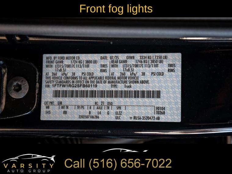 For more information on this 2025 Ford F-150, please call Varsity Autos Group at (516) 656-7022 or with the contact form on this page. This vehicle's vin number is 1FTFW1RG2SFB60119 and is recorded as being in stock at Varsity Autos Group at 500 Old Country Rd in Westbury. See all cars from this dealership.