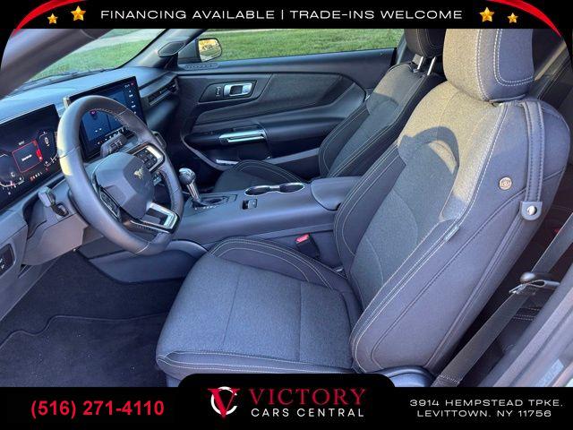 All pricing and details are believed to be accurate, but we do not warrant or guarantee such accuracy. The prices shown above may vary from region to region, as will incentives, and are subject to change. All cars are sold cosmetically As-Is. Vehicle information is based on standard equipment and may vary from vehicle to vehicle. Call or email for complete vehicle specific information. Price Does not include tax, title, license, destination charges, finance charges, or any reconditioning fees. Our special Internet pricing cannot be extended without a printed copy of the online pricing. The in-store price may exceed our special online pricing. Sorry but we cannot extend special pricing without a printed copy of the on-line pricing. To take advantage of our special Internet discounts, please print this page and present it to your salesperson at the BEGINNING of the transaction. Special Internet pricing posted on this ad/coupon/promotion is only available to customers who reference such pricing & present the ad at time of sale otherwise our store standard list price applies. Please be advised this ad is a Special Internet only ad. Prices can be modified and adjusted weekly, daily and sometimes hourly due to inquiries, bidding and website traffic on any Vehicles. All displayed inventory is subject to prior sale and all prices expire at midnight on the date displayed. Every reasonable effort has been made to ensure the accuracy of the information contained on this site, however absolute accuracy cannot be guaranteed. Advertised special excludes state tax, title, license, registration, NY state inspection, NYS tire recycling fee, finance charges, and dealer fees if applicable. Please verify any information in question with the dealership sales manager. This is easily done by calling us at (516) 271-4110 or by visiting us at the dealership. **With approved credit. Gray Metallic 2025 Ford Mustang EcoBoost RWD 10-Speed Automatic EcoBoost 2.3L I4 GTDi DOHC Turbocharged VCT
