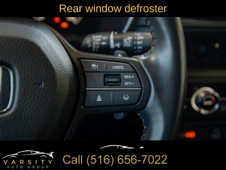 8 Speakers, AM/FM radio: SiriusXM, Radio data system, Radio: 320-Watt AM/FM/HD/SiriusXM Audio System, Air Conditioning, Automatic temperature control, Front dual zone A/C, Rear window defroster, Memory seat, Power driver seat, Power steering, Power windows, Remote keyless entry, Steering wheel mounted audio controls, Four wheel independent suspension, Speed-sensing steering, Traction control, 4-Wheel Disc Brakes, ABS brakes, Dual front impact airbags, Dual front side impact airbags, Front anti-roll bar, Knee airbag, Low tire pressure warning, Occupant sensing airbag, Overhead airbag, Rear anti-roll bar, Rear side impact airbag, Power moonroof, Power Liftgate, Blind Spot Information (BSI) System warning, Brake assist, Electronic Stability Control, Exterior Parking Camera Rear, Auto High-beam Headlights, Delay-off headlights, Fully automatic headlights, Panic alarm, Security system, Adaptive Cruise Control: Adaptive Cruise Control (ACC) with Low-Speed Follow, Speed control, Bumpers: body-color, Heated door mirrors, Power door mirrors, Spoiler, Turn signal indicator mirrors, Auto-dimming Rear-View mirror, Compass, Driver door bin, Driver vanity mirror, Front reading lights, Illuminated entry, Leather Shift Knob, Leather steering wheel, Outside temperature display, Overhead console, Passenger vanity mirror, Rear reading lights, Rear seat center armrest, Telescoping steering wheel, Tilt steering wheel, Trip computer, Front Bucket Seats, Front Center Armrest, Heated Front Bucket Seats, Heated front seats, Leather Seat Trim, Power passenger seat, Split folding rear seat, Passenger door bin, Alloy wheels, Wheels: 18" Berlina Black Alloy, Rear window wiper, Speed-Sensitive Wipers, Variably intermittent wipers, 2025 Honda CR-V Hybrid Sport-L, Radiant Red Metallic, Black w/Leather Seat Trim, Wireless Apple Carplay, Android Auto, All Wheel Drive, Hybrid, Clean CARFAX