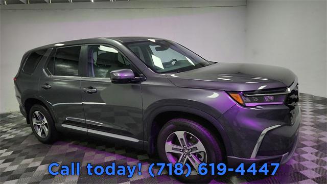 CARFAX One-Owner. 2025 Honda Pilot EX-L AWD, AM/FM radio: SiriusXM, Auto High-beam Headlights, Automatic temperature control, Blind Spot Information (BSI) System warning, Exterior Parking Camera Rear, Front dual zone A/C, Front fog lights, Fully automatic headlights, Lane departure: Lane Keeping Assist System (LKAS) active, Power Liftgate, Radio: 245-Watt Audio System, Rear air conditioning, Remote keyless entry, SiriusXM, Steering wheel mounted audio controls.