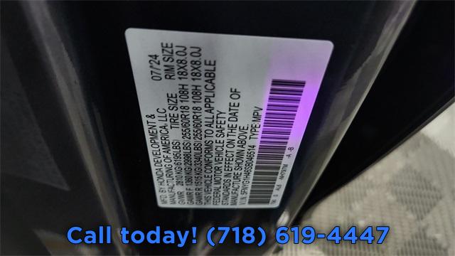 9 Speakers, AM/FM radio: SiriusXM, Radio data system, Radio: 245-Watt Audio System, SiriusXM, Air Conditioning, Automatic temperature control, Front dual zone A/C, Rear air conditioning, Rear window defroster, Memory seat, Power driver seat, Power steering, Power windows, Remote keyless entry, Steering wheel mounted audio controls, Four wheel independent suspension, Speed-sensing steering, Traction control, 4-Wheel Disc Brakes, ABS brakes, Dual front impact airbags, Dual front side impact airbags, Emergency communication system: HondaLink Assist, Front anti-roll bar, Knee airbag, Low tire pressure warning, Occupant sensing airbag, Overhead airbag, Rear anti-roll bar, Power Liftgate, Blind Spot Information (BSI) System warning, Brake assist, Electronic Stability Control, Lane departure: Lane Keeping Assist System (LKAS) active, Exterior Parking Camera Rear, Auto High-beam Headlights, Delay-off headlights, Front fog lights, Fully automatic headlights, Panic alarm, Security system, Adaptive Cruise Control: Adaptive Cruise Control (ACC) with Low-Speed Follow, Speed control, Bumpers: body-color, Heated door mirrors, Power door mirrors, Spoiler, Turn signal indicator mirrors, Apple CarPlay/Android Auto, Auto-dimming Rear-View mirror, Driver door bin, Driver vanity mirror, Front reading lights, Garage door transmitter: HomeLink, Illuminated entry, Outside temperature display, Overhead console, Passenger vanity mirror, Rear reading lights, Rear seat center armrest, Tachometer, Telescoping steering wheel, Tilt steering wheel, Trip computer, 3rd row seats: split-bench, Front Bucket Seats, Front Center Armrest, Heated Front Bucket Seats, Heated front seats, Leather Seat Trim, Power passenger seat, Reclining 3rd row seat, Split folding rear seat, Passenger door bin, Alloy wheels, Wheels: 18" Pewter Gray Machined Face, Rear window wiper, Speed-Sensitive Wipers, Variably intermittent wipers, 4.167 Axle Ratio