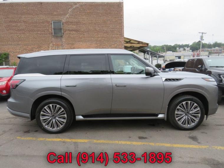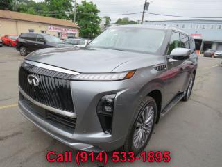 This 2025 INFINITI QX80 4dr SENSORY AWD features a 3.5L V6 CYLINDER 6cyl Gasoline engine. It is equipped with a 9 Speed Automatic transmission. The vehicle is Not Specified with a Not Specified interior. It is offered As-Is, extended warranty is available. - Climate Control, Dual Zone Climate Control, Cruise Control, Tinted Windows, Power Steering, Power Mirrors, Leather Steering Wheel, Rear Air Conditioning, Wood Trim, Clock, Tachometer, Telescoping Steering Wheel, Steering Wheel Radio Controls, Sunroof, Moonroof, Driver Airbag, Passenger Airbag, Side Airbags, Rear Defogger, Intermittent Wipers, AM/FM, Four Wheel Drive, 3rd Row Seating, Adaptive headlights, Aux. Audio Input, Bluetooth, Carpeted Floor Mats, Center Arm Rest, Child Proof Door Locks, Daytime Running Lights, Front AC Seats, Front Heated Seats, Heads Up Display, Heated Mirrors, Navigation System, Overhead Console, Parking Sensors, Power Lift Gate, Rear AC Seats, Rear Heated Seats , Rear Spoiler, Rear Spoiler, Rear Wipers, Remote Trunk Lid, Reverse Camera, Roll Stability Control, Running Boards, Side Curtain Airbags, Sliding Rear Window, Tire Pressure Monitor, Vanity Mirrors - Contact Michael Maratto at (914) 533-1895 for more information. -