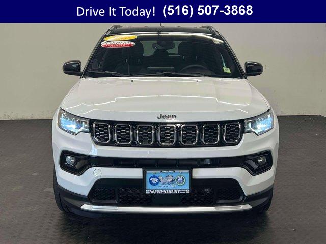 • 4WD confidence meets everyday comfort in this 2025 Jeep Compass 4D Sport Utility with just 11,187 miles. Finished in Bright White Clearcoat with a Black artificial leather interior, it blends clean design with a quiet ride, supportive seating, and practical space for errands, school runs, and weekend getaways. The smooth 8-speed automatic pairs with the efficient 2.0L I4 DOHC for easy cruising and sure-footed traction when weather turns. Dual-zone climate control, heated front seats, and a split-folding rear seat make daily life simpler and more comfortable.Stay connected and in control with a 10.1 inch multimedia display powered by Uconnect 5, Apple CarPlay and Android Auto integration, and AM/FM radio with SiriusXM capability. The premium Uconnect 5 audio, 6 speakers, and steering wheel media controls keep your playlists and podcasts within easy reach. Jeep Connect emergency communication adds peace of mind, while an auto-dimming rear-view mirror reduces glare. For visibility and convenience, you get auto high-beam headlights, rain-sensing wipers, front fog lights, heated door mirrors, and the ParkView Rear Back-Up Camera. Multiple airbags including knee airbags, Electronic Stability Control, Traction Control, ABS, and 4-wheel disc brakes support confident driving. Comfort touches include a power driver seat, leather-wrapped steering wheel, automatic temperature control, remote keyless entry, and illuminated entry, with stylish 18 inch alloy wheels and body-color bumpers rounding out the look. Quick Order Package 29G bundles many of these desirable features for added value & more.With only 11,187 miles, this Compass has low miles for its age and has been lightly driven compared to many similar vehicles. It delivers the solid feel, quiet cabin, and practical versatility shoppers expect from an affordable used car while giving you modern tech and cold-weather warmth without excess wear.VIP+ ProgramEnjoy lasting value with our VIP+ Program. You get Unlimited Oil and Filter Changes for 1 year, then included with every factory maintenance thereafter, plus Complimentary NYS Inspections, Complimentary Loaner Cars, and Complimentary 24/7 Rescue and Towing. These benefits are For Life and Transferable, adding real long-term peace of mind to your purchase.More About UsEvery vehicle we offer is hand selected for quality and long-term reliability, then thoughtfully reconditioned before sale so you can purchase with confidence. Our certified vehicles meet strict standards, including brake life no less than 50 percent, to help ensure safety from day one. Count on our team for trust, preparation, and peace of mind. We are a proud member of the VIP Auto Group serving the community since 1957. We Will Satisfy You!For commuting, school drop-offs, and weekend escapes, this Compass delivers the right blend of traction, comfort, and value. 4WD, heated front seats, heated mirrors, rain-sensing wipers, and auto high beams inspire winter confidence, while the 10.1 inch multimedia display and steering wheel media controls make daily driving easier. If you’re shopping Long Island or New York roads all year, this well-equipped SUV offers safety, reliability, and long-term value that fits your life.Ready to learn more or schedule a test drive? Long Island and New York shoppers can call now, visit WestburyJeep.com for up-to-date inventory and current pricing, or stop in to experience this 2025 Jeep Compass in person. This overview and the feature list are general and may vary by vehicle. Please contact us to confirm exact equipment and availability.