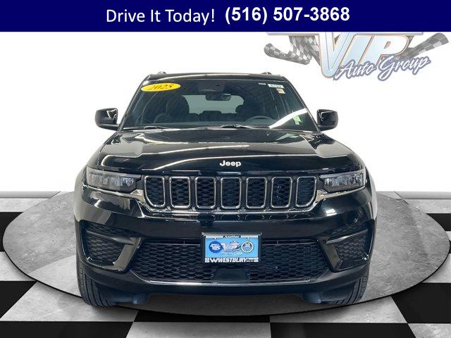 • 4WD confidence meets V6 strength in this 2025 Jeep Grand Cherokee 4D Sport Utility, engineered to handle weekday commutes and weekend getaways with equal poise. Finished in Diamond Black Crystal Pearlcoat with a black cloth interior, it blends a bold look with everyday comfort. The 3.6L V6 and smooth 8-speed automatic deliver refined power, while Normal Duty Suspension and four wheel independent suspension help keep the ride composed on rough pavement and wet highways. Open the power sunroof for light and fresh air, and enjoy a cabin designed for real life with automatic temperature control, dual zone A/C, a supportive power driver seat, and a split folding rear seat for quick cargo flexibility. Fully painted aluminum wheels and body-color bumpers complete its clean, modern stance.Stay connected and in control with the Uconnect 5 system and an 8.4 inch multimedia display, AM/FM radio with SiriusXM, 6 speakers, radio data system, and steering wheel media controls. Confidence comes standard with ParkView Rear Back-Up Camera, Electronic Stability Control, traction control, 4-wheel disc brakes with ABS, brake assist, and fully automatic headlights. Multiple airbags including knee airbags, anti-whiplash front head restraints, a security system, panic alarm, and low tire pressure warning add reassurance. Everyday convenience is built in with remote keyless entry, power windows, power steering, power door mirrors with heat, speed control, speed-sensitive wipers, rear defroster, rear wiper, illuminated entry, and an overhead console. Useful details like a compass, outside temperature display, trip computer, tachometer, voltmeter, and front and rear reading lights make long drives simpler. The Laredo X package, MOPAR Finishing Package, MOPAR front and rear splash guards with Jeep logo, and MOPAR paint protection film help protect your investment, and a front license plate bracket is ready for regional compliance. Alloy wheels, a rear spoiler, and adjustable head restraints round out the thoughtful touches & more.This 2025 Grand Cherokee shows 13,412 miles. It presents the balanced wear you expect from a modern SUV designed to deliver comfort, capability, and long-term value.VIP+ ProgramEnjoy our VIP+ Program with Unlimited Oil and Filter Changes for 1 year, then included with every factory maintenance thereafter. You also receive Complimentary NYS Inspections, Complimentary Loaner Cars, and Complimentary 24/7 Rescue and Towing. These benefits are For Life and Transferable, adding long-term value and convenience to your ownership experience.More About UsEvery vehicle is hand selected for quality and long-term reliability, and reconditioning is completed prior to sale so you can purchase with confidence. Our certified vehicles meet strict standards, including brake life no less than 50 percent, to help ensure safety and performance. We emphasize trust, preparation, and peace of mind in every sale. Proud member of the VIP Auto Group serving the local community since 1957, We Will Satisfy You!This Grand Cherokee’s capable 4WD, confident braking, and ParkView camera inspire winter confidence across the Northeast, while comfortable seating, dual zone climate control, and quiet road manners keep daily commuting easy. If you are looking for an affordable used car or comparing options like a used truck in New York, this SUV brings the safety, reliability, and long-term value families and commuters need on Long Island roads.Ready to learn more or take a test drive? New York shoppers can call now, schedule an appointment, or visit WestburyJeep.com to see up-to-date inventory and current pricing. This overview is provided as a general guide to the vehicle’s features and equipment and may vary by vehicle.