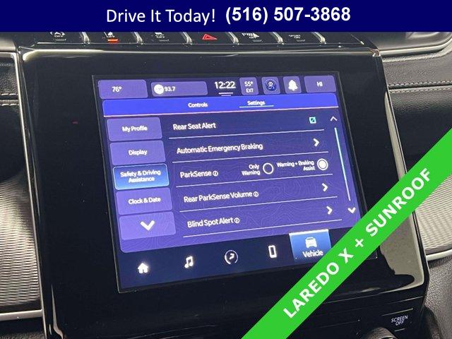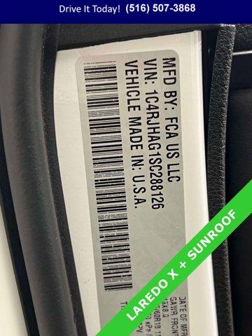 BRIGHT WHITE CLEARCOAT, ENGINE: 3.6L V6 24V VVT UPG I W/ESS (STD), MOPAR FINISHING PACKAGE -inc: MOPAR Rear Splash Guards w/Jeep Logo MOPAR Paint Protection Film MOPAR Front Splash Guards, QUICK ORDER PACKAGE 23D LAREDO X -inc: Engine: 3.6L V6 24V VVT UPG I w/ESS Transmission: 8-Speed Automatic 8HP50 Laredo X Power Sunroof, MODEL YEAR TRACKING, GLOBAL BLACK CLOTH SEATS, TRANSMISSION: 8-SPEED AUTOMATIC 8HP50 (STD), FRONT LICENSE PLATE BRACKET